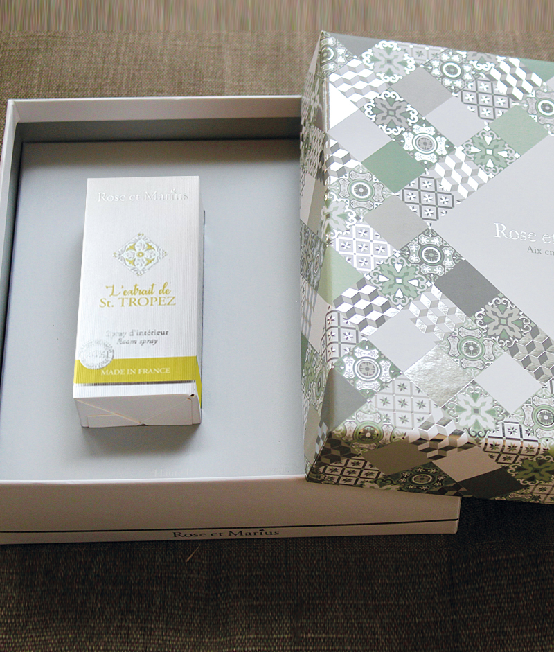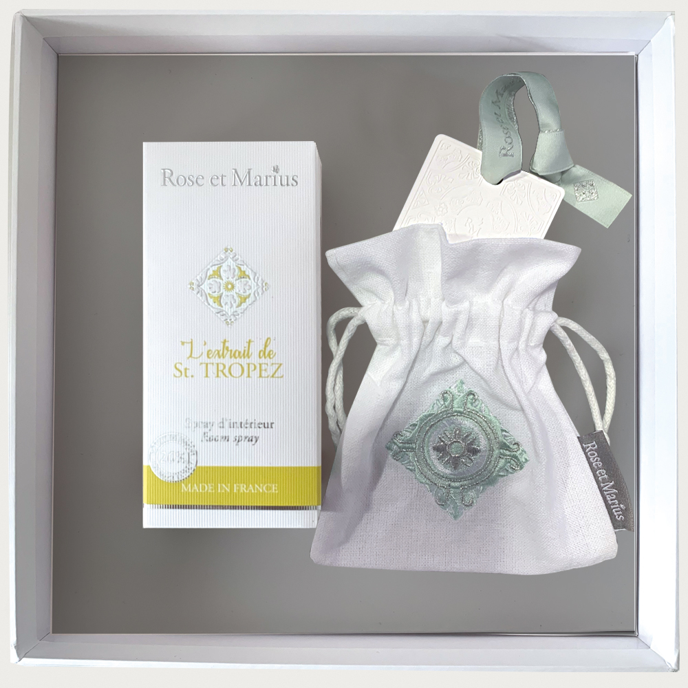Замечательная идея для подарка! Драгоценная коробка с 1 спреем для интерьера из фигового дерева и парфюмерной плиткой в вышитой сумочке. Аромат для интерьера Rose et Marius от компании Haute Parfumerie de Provence. Он имеет исключительную концентрацию 20% парфюма, который оставит ароматный след в вашем интерьере. Его состав позволит вам также опрыскивать подушки, шторы, бельё ... На душистой плитке выгравирован наш культовый узор из цементной плитки. Наши мастера в Лиможе с любовью делают его. Его сырье позволяет распылять духи в течение нескольких недель. Для этого 3 раза распылите ароматизатор для интерьера на плитку и повесьте его в шкафу, шкафу или даже в машине. И отправляйтесь в исключительное обонятельное путешествие по Провансу. Поставляется в элегантной коробке с мотивом цементной плитки, украшенной горячим серебром, это мотив плитки на полу знаменитого бутика Rose et Marius в Экс-ан-Провансе. Эксклюзивный аромат, созданный нашим парфюмером из Грасса, чтобы провести вас в исключительном ольфакторном путешествии по Провансу. Сен-Тропе, очаровательная деревня в Провансе на побережье Средиземного моря. Мы проведем вас по тропе Gigaro, наполненной ароматом эвкалипта, фенхеля и морских брызг . Ноты : эвкалипт, цветы фенхеля, тёплый песок. Ароматизатор для дома с исключительной концентрацией (20%) эксклюзивного аромата Rose et Marius. На основе ароматических масел BIO, без алкоголя. Сделано во Франции.