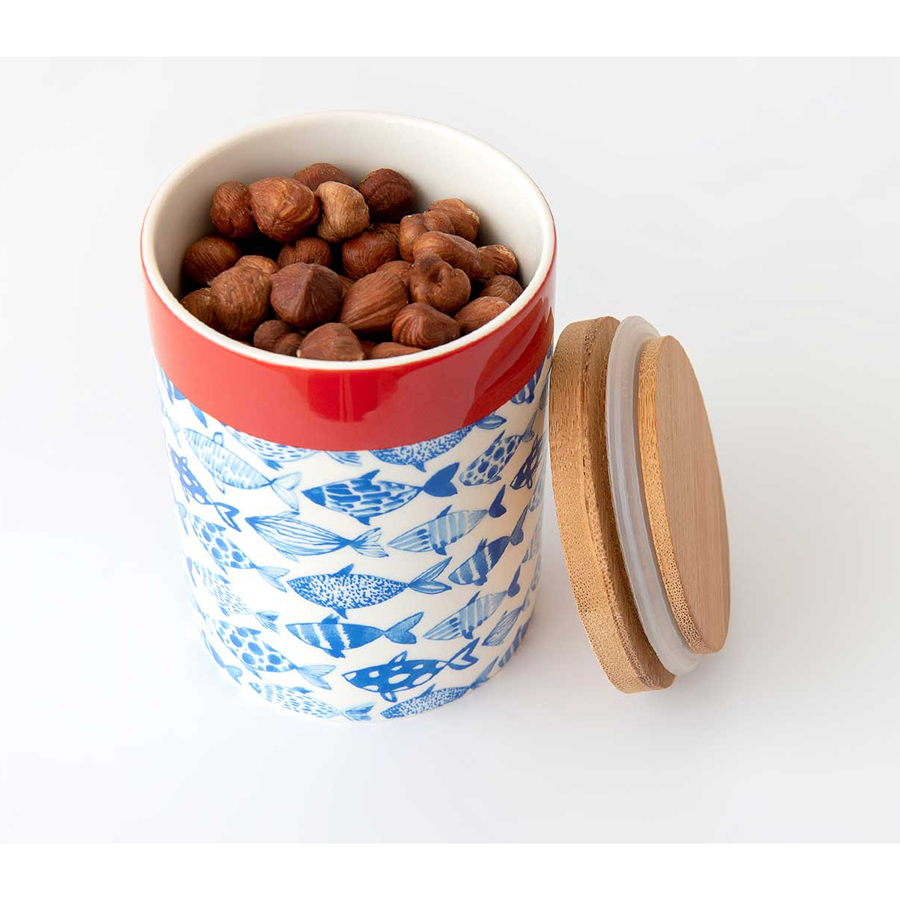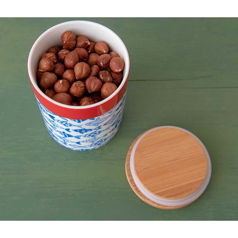 Фарфоровая банка в ярком оригинальном дизайне прекрасно подходит для хранения бакалеи.