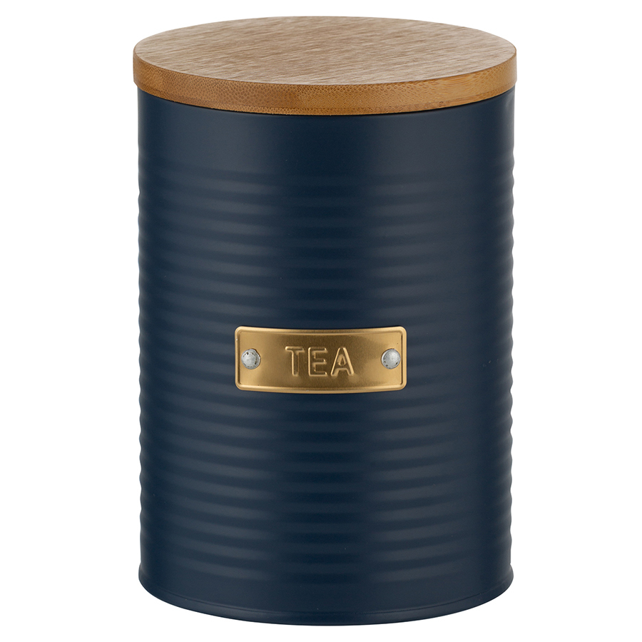 Банка для чая из коллекции Otto – удобное решение для хранения сыпучих продуктов и стильный элемент кухонного интерьера. Эргономичный контейнер выполнен из прочной, устойчивой к коррозии и деформации углеродистой стали. Плотно прилегающая бамбуковая крышка с силиконовым уплотнителем защищает содержимое банки от заветривания и отсыревания. Рельефная поверхность и красивое сочетание золотистого декора с матовым покрытием насыщенного синего цвета делает дизайн интересным. Такая посуда отлично вписывается в интерьер, оформленный в классическом и современном стиле.