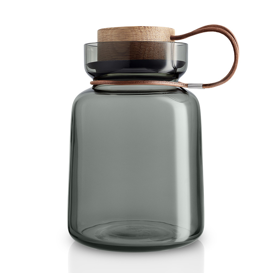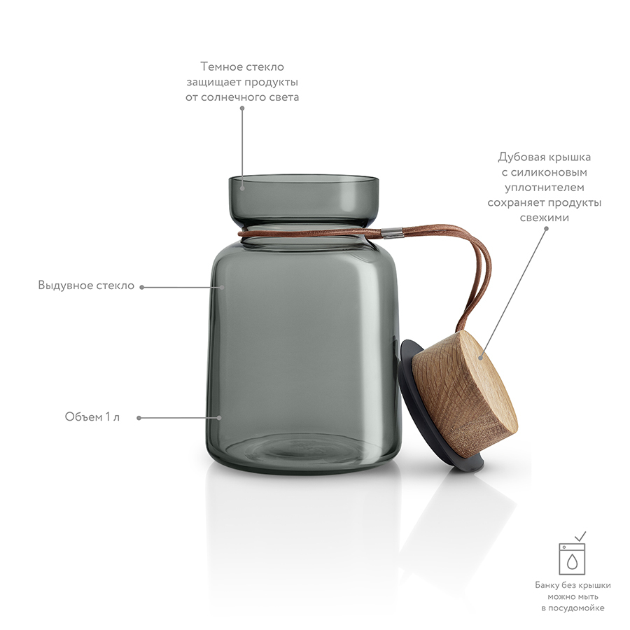 Банка Silhouette предназначена для хранения сыпучих продуктов: кофе, чая, орехов, круп, макаронных и кондитерских изделий. Классический дизайн делает емкость универсальным аксессуаром для кухни в любом стиле. Банка выполнена из дымчатого выдувного стекла, которое защищает содержимое от солнечного света, сохраняя ароматы и цвета. Изделие оснащено удобной, плотно закрывающейся дубовой пробкой, которая прикреплена к горлышку с помощью кожаного ремешка.