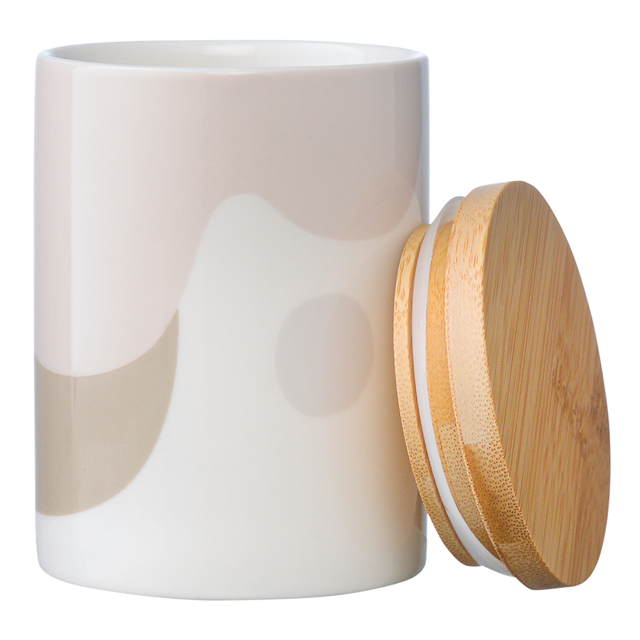 Емкость выполнена из высококачественного фарфора, экологически чистого и практичного материала, прочного и устойчивого к сколам. Бамбуковая крышка с силиконовым уплотнителем обеспечивает герметичность.