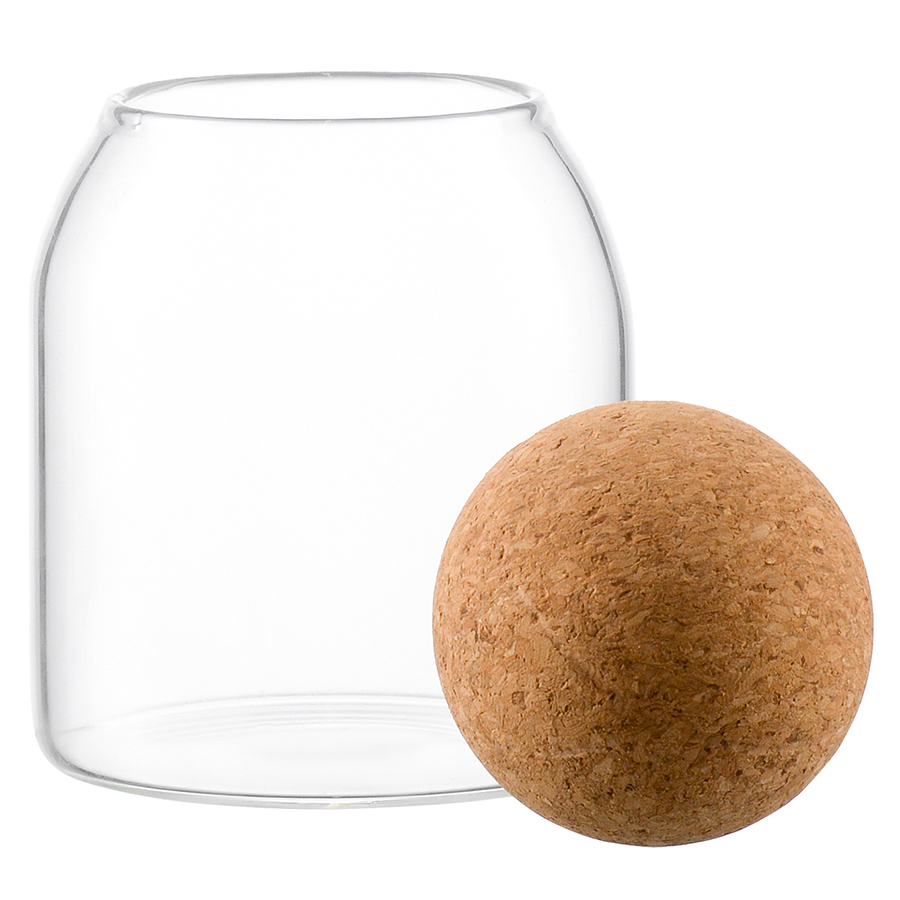 - Крышка из натуральной пробки в виде шара делает дизайн интересным, обеспечивает удобное и практичное хранение.