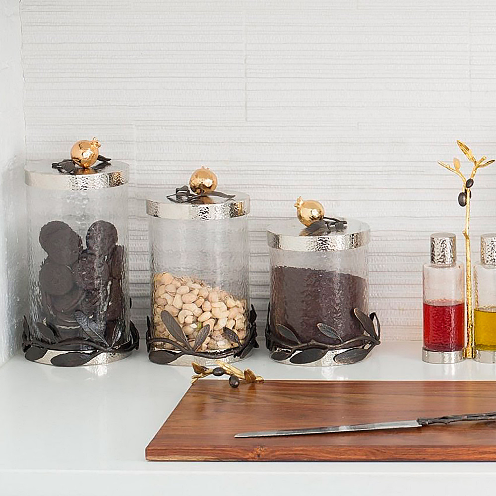 Банка для сыпучих продуктов 25см Michael Aram Оливковая ветвь Золотой гранат