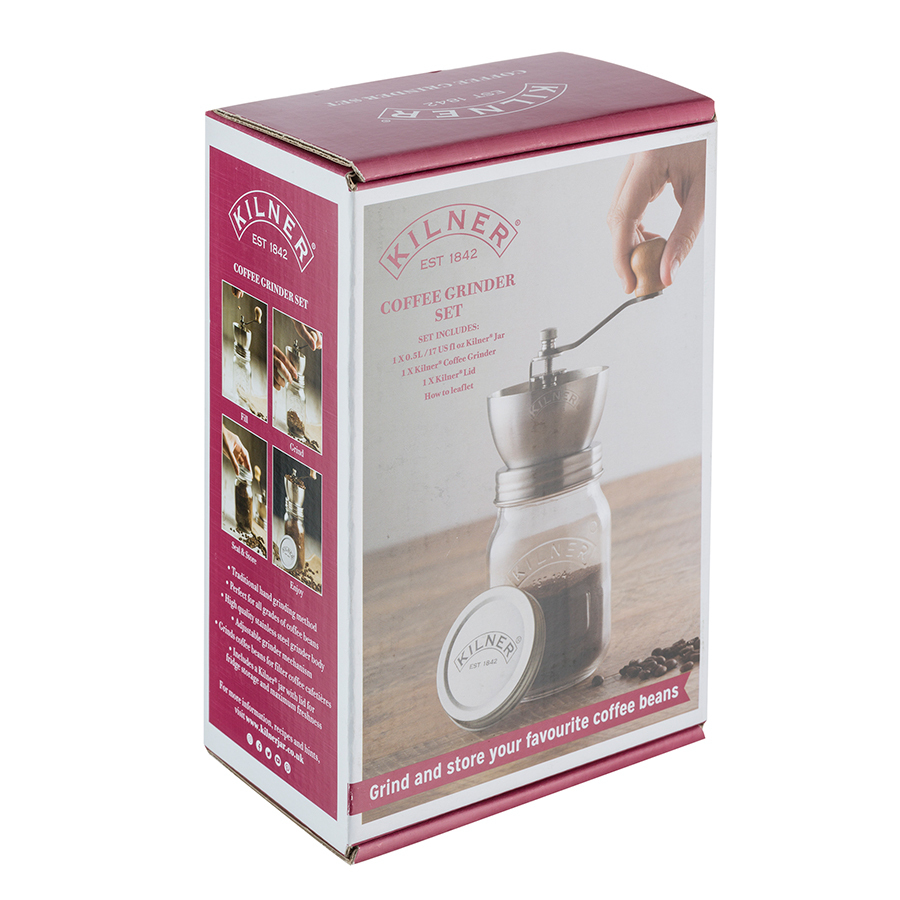 Кофемолка 2-в-1, которая идет в комплекте с банкой для кофе и закручивающейся крышкой, которая не пропускает воздух. Винтажный дизайн этой ручной кофемолки — стильное дополнение к любой кухне. Кофемолка выполнена из нержавеющей стали и оснащена надёжным механизмом для измельчения кофейных зёрен. Банку с перемолотым кофе рекомендуется хранить в холодильнике. Набор упакован в красивую коробку и станет отличным подарком всем любителям кофе.