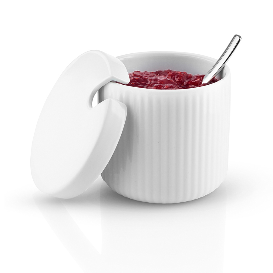 Удобная многофункциональная баночка для сервировки. Храните в ней сахар, джем, горчицу, соусы, тапенады, орехи или цукаты. В крышке предусмотрена выемка для ложки, чтобы она всегда была под рукой (,ложка не входит в комплект),. Как и все предметы Legio Nova, баночку можно использовать в духовке, морозильной камере, микроволновой печи и мыть в посудомоечной машине. Современная классика!