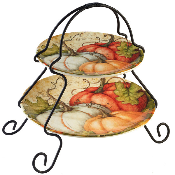 Блюдо двухъярусное Certified Int. Осенние поля.Тыква 18см, 23см