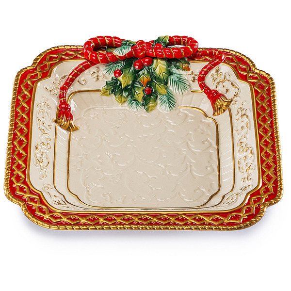 Блюдо квадратное 29 см Зачарованный лес красное ручная роспись Lamart LMR-17012