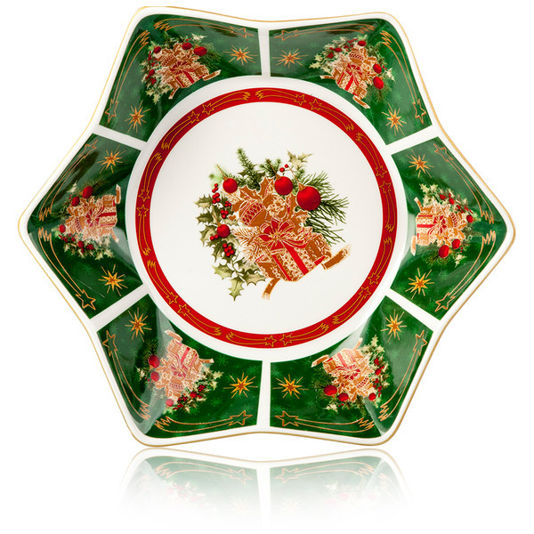 Блюдо-звезда 25см Новогодние праздники зеленое Lamart