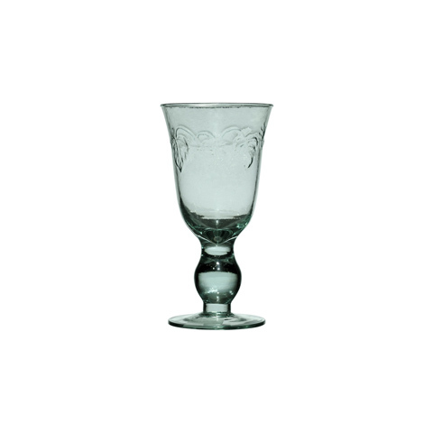 Красивый бокал на ножке для испития вина. Стекло с узором и невысокая ножка придает бокалу оригинальный и изысканный вид.