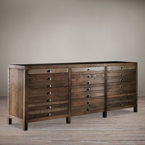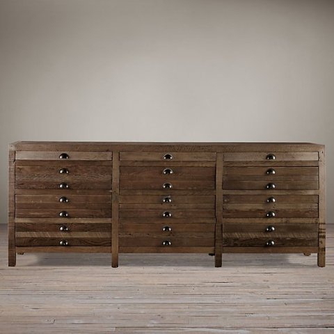 Буфет с выдвижными ящиками. Отделка в светло-коричневом цвете. Изготовлен из массива сосны, фурнитура из бронзы.