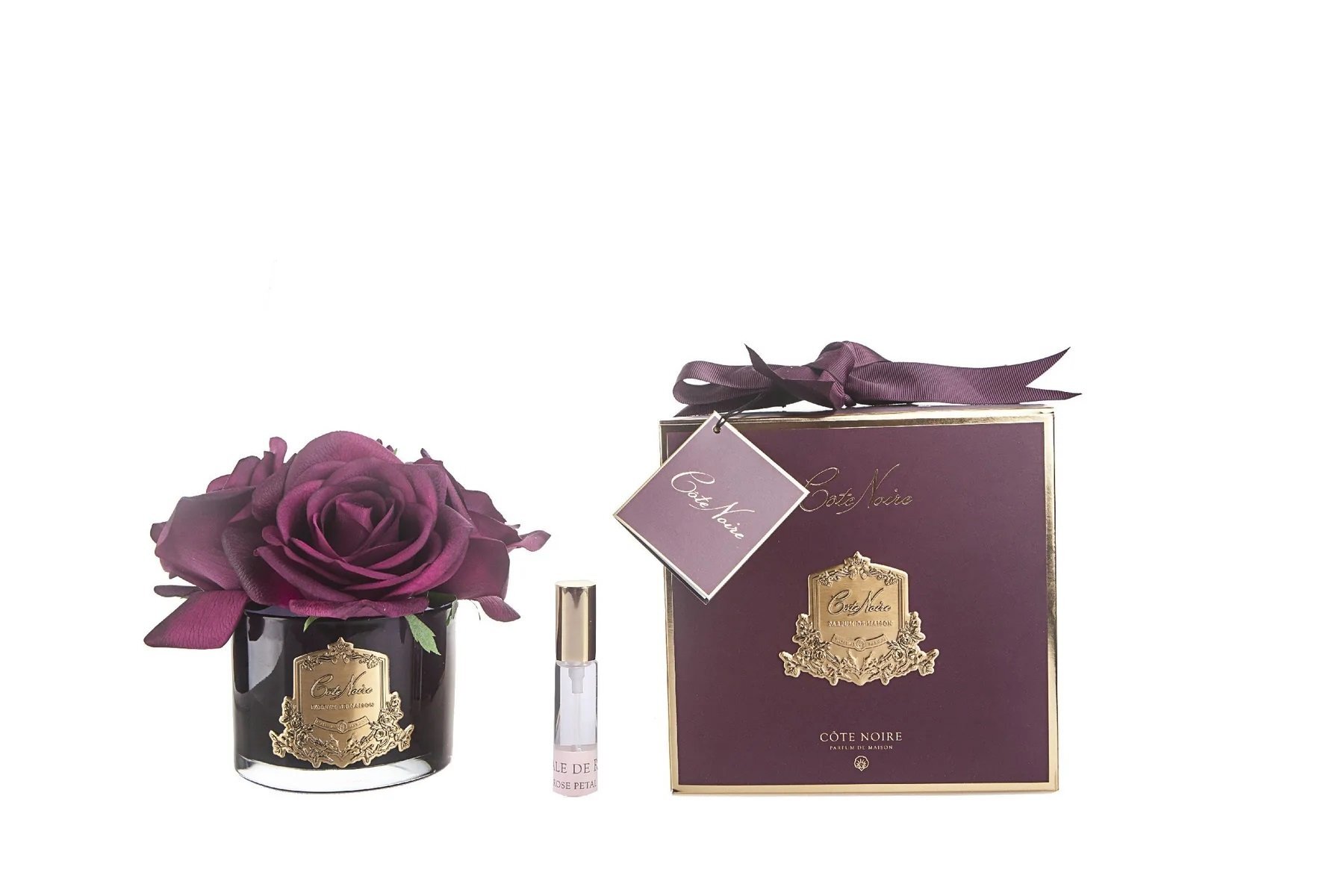 Букет из 5 роз ароматизированный в черной вазе и 1 спрей Cote Noire Five Rose Carmine Red Burgundy Box