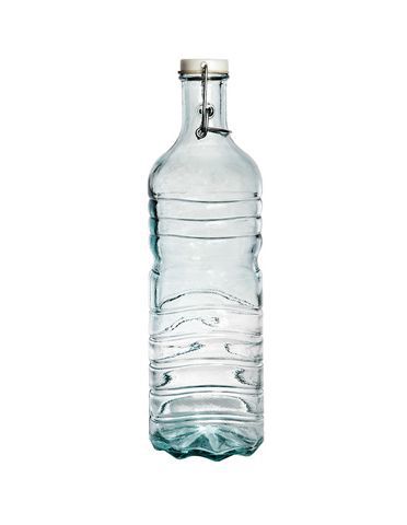 Невероятно красивая бутыль от San Miguel. Горлышко бутыли закрывается крышкой с фиксатором. Выполнена из прозрачного стекла с рельефрым рисунком в виде горизонтальных полос.