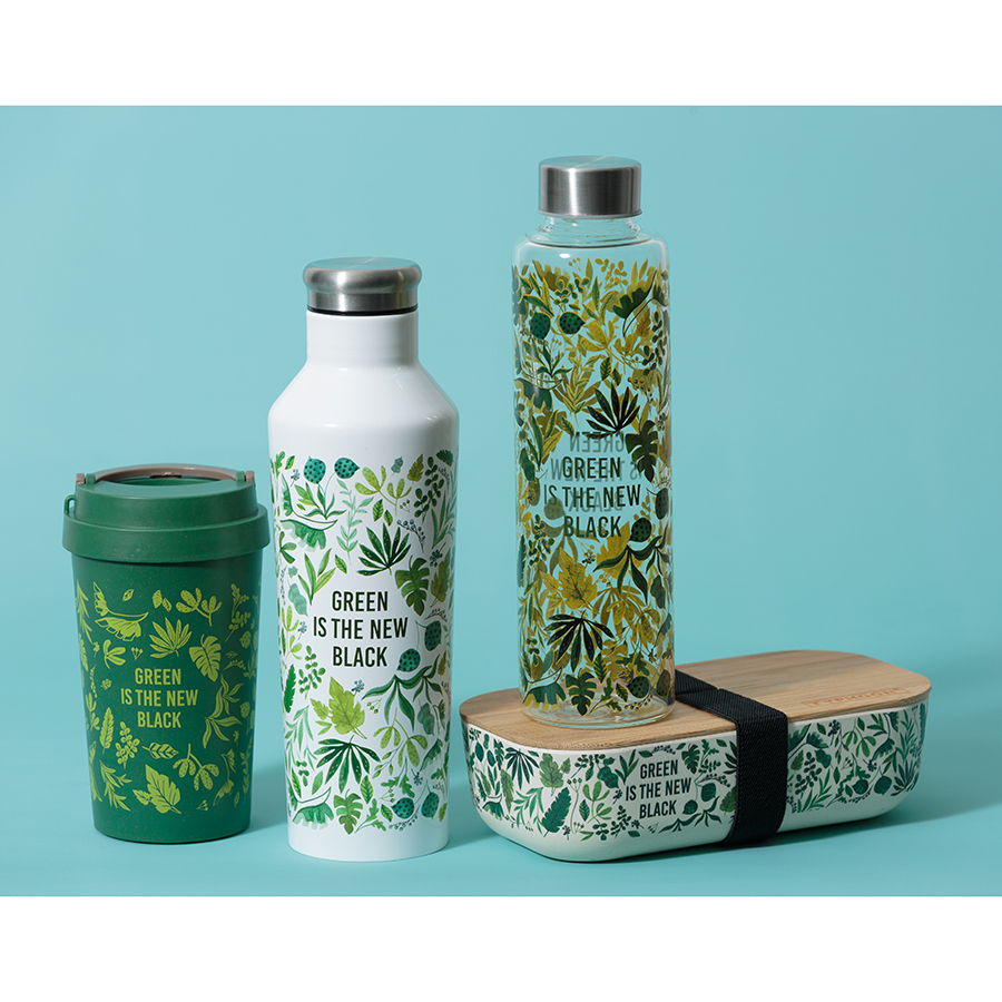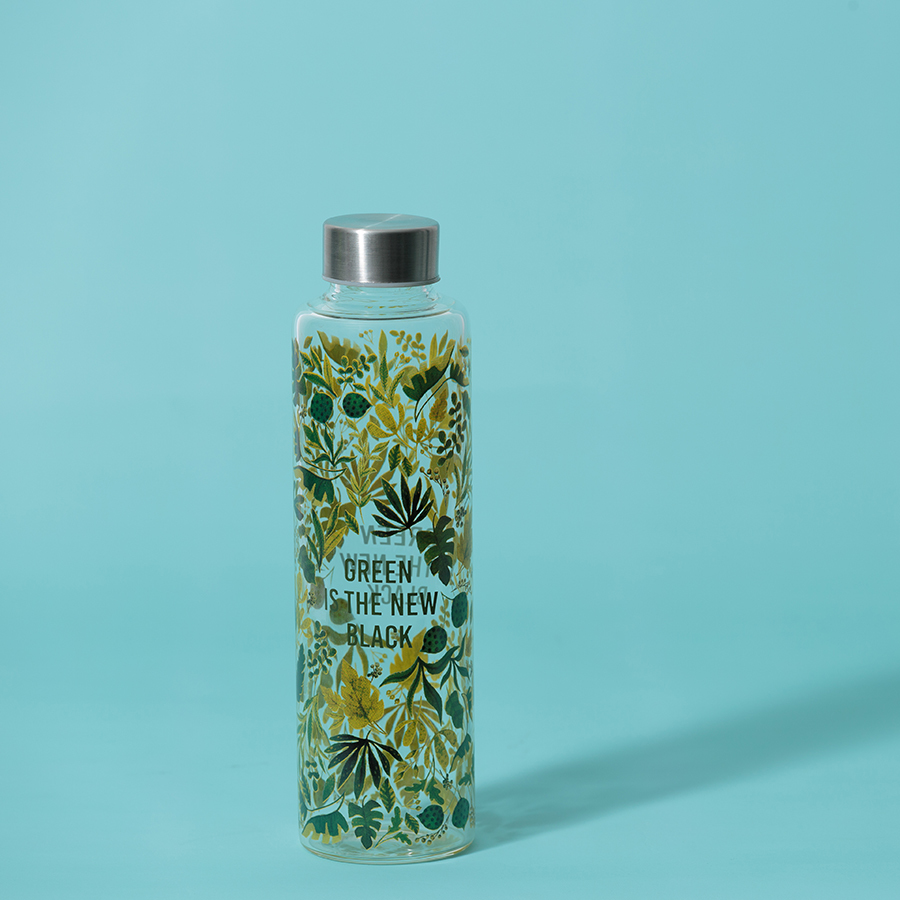 Стильная стеклянная бутылка позволит носить любимые напитки с собой и избавит от необходимости использовать одноразовый пластик.
