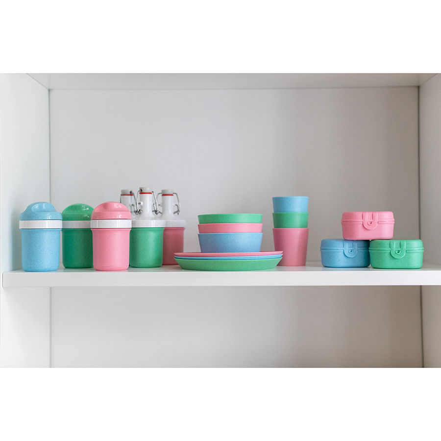 Можно мыть в посудомоечной машине без использования агрессивных средств и нейтрализаторов запаха: они вызывают обесцвечивание пластика. Если размер позволяет, лучше размещать в верхней секции. Даже если пластик помялся в процессе мытья, через время он восстановит форму. Такие продукты, как помидоры, морковь, яйца, шпинат, черника и свекла могут окрашивать воду в посудомойке и вызывать изменение цвета изделия. Чтобы избежать этого, рекомендуется ополаскивать его перед тем, как загружать в посудомойку. Избавиться от пятен можно, подвергнув изделие воздействию света. Нельзя использовать для горячих напитков.