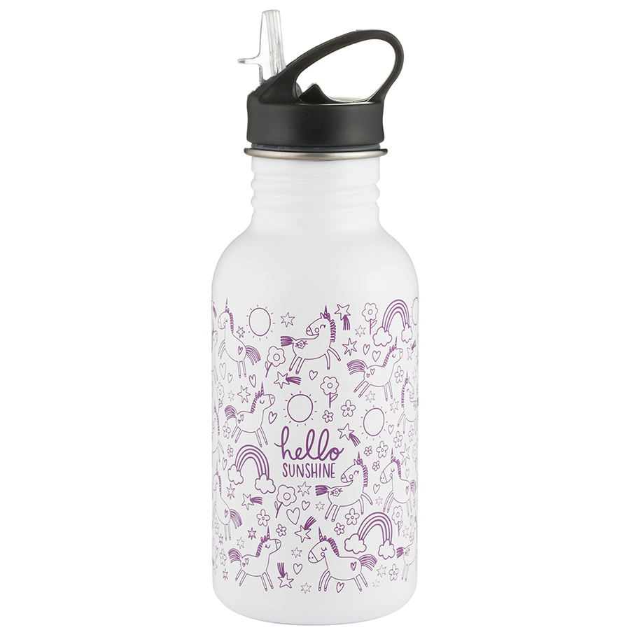 Бутылка из нержавеющей стали меняет цвет: при температуре ниже 18 °C она становится розовой, а при температуре выше 18 °C — белой. Широкое горлышко позволяет класть в бутылку кубики льда. Откидная трубочка снижает риск проливания. Объем: 550 мл.