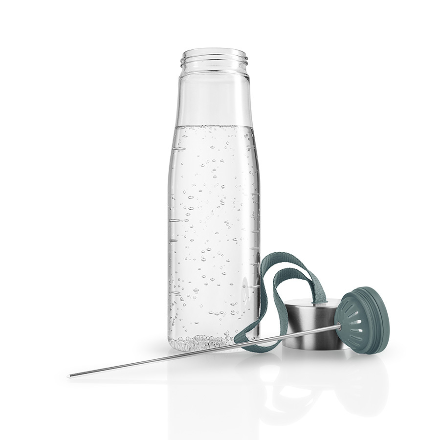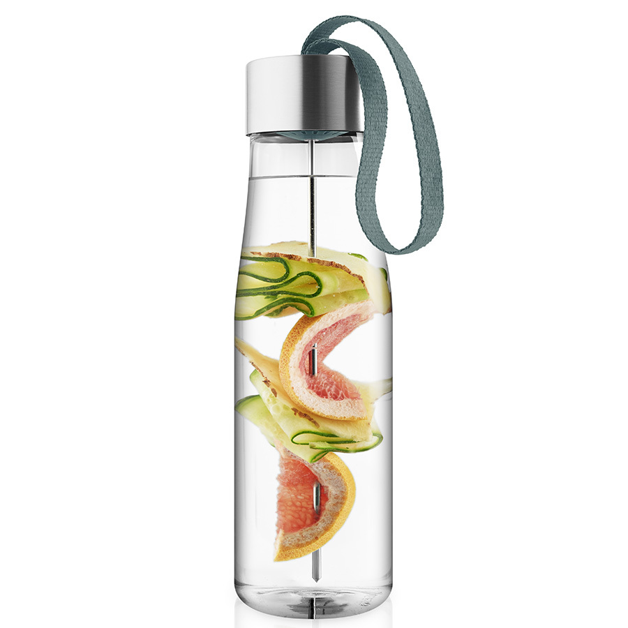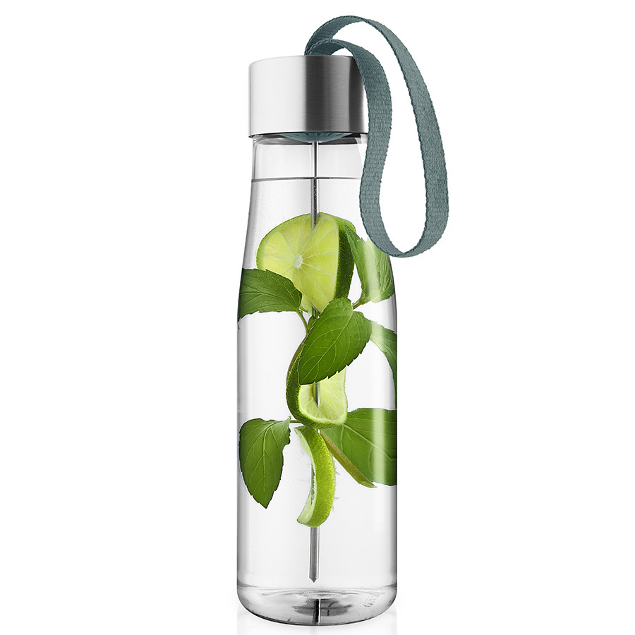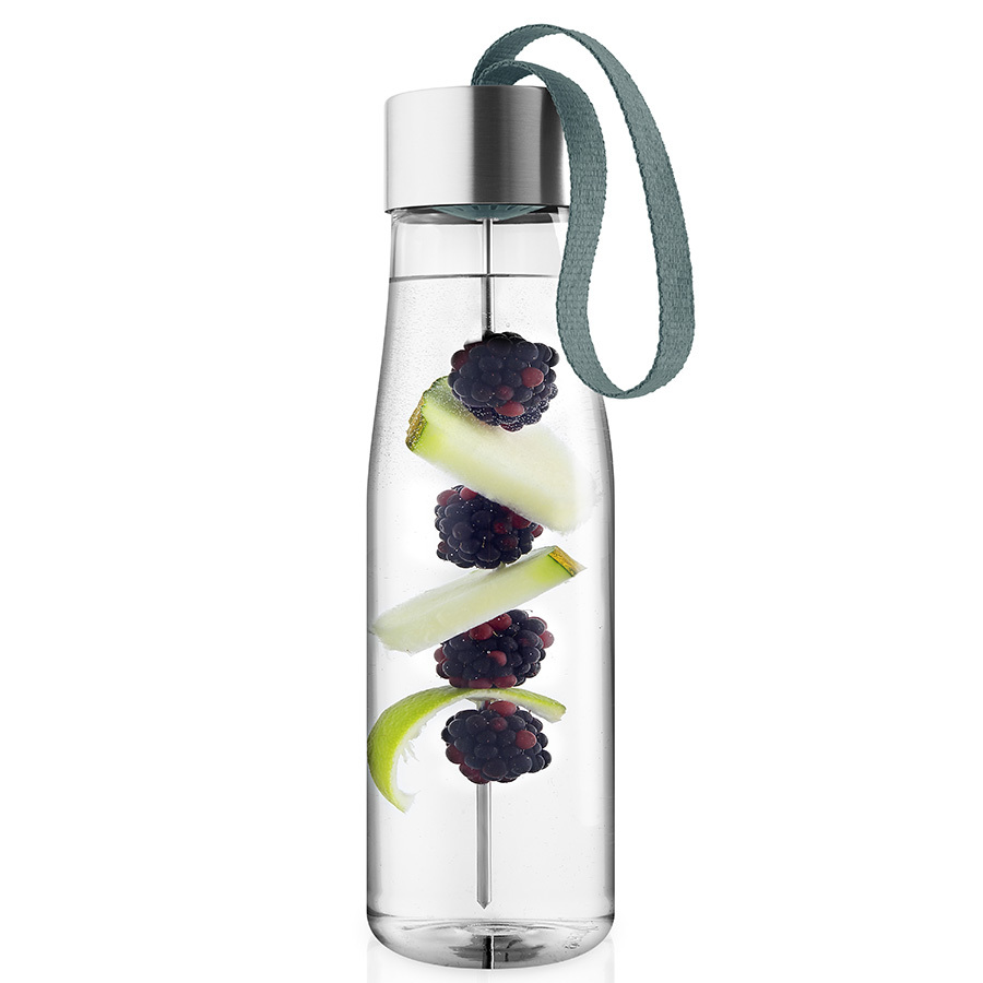 Бутылка для воды MyFlavour — это стильный и современный аксессуар для всех, кто следит за своим здоровьем. Дизайнеры бренда Eva Solo создали оригинальное дополнение к классической модели бутылки — съёмную шпажку для фруктов, которая крепится к крышке. Освежите воду кусочками свежих ананасов, клубники, огурцов или дольками цитрусовых или имбиря, такой напиток зарядит бодростью в течение дня.Бутылка прекрасно подойдет для прогулок пешком или на велосипеде, а также для занятий спортом. Благодаря тканевому ремешку её удобно носить в руках. Герметично закрывающаяся крышка не позволяет жидкости разлиться, если бутылка находится в сумке или рюкзаке.