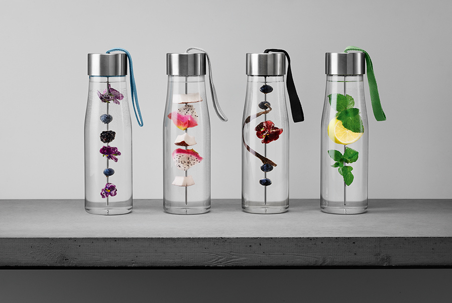 Бутылка для воды — это стильный и современный аксессуар для всех, кто следит за своим здоровьем. Дизайнеры бренда Eva Solo создали оригинальное дополнение к классической модели бутылки — съёмную шпажку для фруктов, которая крепится к крышке. Освежите воду кусочками свежих ананасов, клубники, огурцов или дольками цитрусовых или имбиря, такой напиток зарядит бодростью в течение дня.