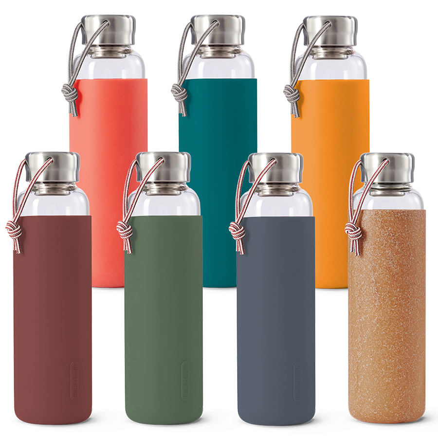 Стеклянная бутылка для воды от Black&Blum объемом 600 мл – отличное решение для работы, прогулок и спорта. Особенность изделия – яркий силиконовый чехол, который защищает емкость от сколов и препятствует выскальзыванию из рук. Для изготовления бутылки используется боросиликатное стекло, которое не впитывает запахи и легко поддается чистке. Винтовая крышка с внутренней вставкой выполнена из экологически чистого полипропилена и нержавеющей стали, которая защищает напитки от соприкосновения даже с самым безопасным пластиком. Нейлоновая петля на крышке обеспечивает удобство при переноске.