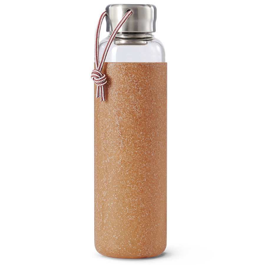 Стеклянная бутылка для воды от Black&Blum объемом 600 мл – отличное решение для работы, прогулок и спорта. Особенность изделия – светло-коричневый чехол, изготовленный из термопластика с добавлением целлюлозы для создания эффекта «крафтовой» текстуры. Он защищает емкость от сколов и препятствует выскальзыванию из рук. Для изготовления бутылки используется боросиликатное стекло, которое не впитывает запахи и легко поддается чистке. Винтовая крышка с внутренней вставкой выполнена из экологически чистого полипропилена и нержавеющей стали, которая защищает напитки от соприкосновения даже с самым безопасным пластиком. Нейлоновая петля на крышке обеспечивает удобство при переноске.