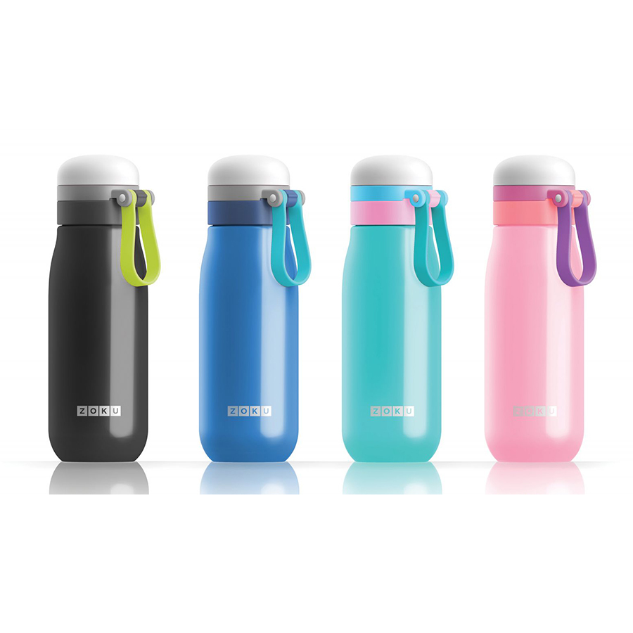 Легкая вакуумная бутылка от Zoku идеально подходит для воды и холодных напитков. Изделие выполнено из нержавеющей стали, которая отличается стойкостью к коррозии и длительным сроком службы. Навесное стопорное кольцо означает, что вы никогда не потеряете крышку. Гибкая петля для переноски позволит брать с собой бутылку в школу, на прогулку, работу или пробежку. Посуду рекомендуется мыть вручную с использованием мягких моющих средств. Не содержит бисфенола А и фталатов.