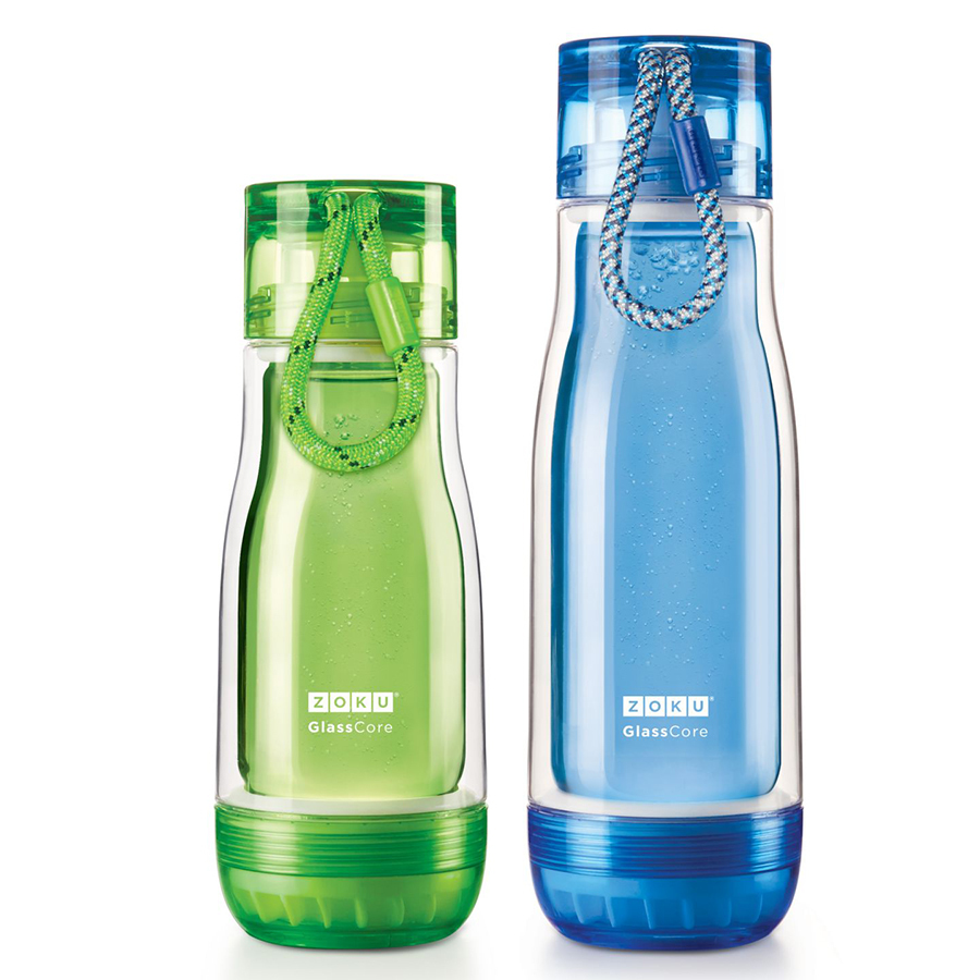 Бутылка Zoku идеально подойдет всем, кто регулярно занимается спортом и любит активный образ жизни. Бутылка выполнена из боросиликатного стекла и заключена в пластиковый корпус, укрепленный с двух сторон силиконовыми ударопрочными подкладками. Крышка полностью герметична, оснащена прочным и гибким шнурком для переноски и закрывается при повороте всего на 90° благодаря запатентованной технологии Rapid Lock™. Защитная конструкция с двойными стенками помогает избежать конденсации и поддерживает температуру напитка в течение долгого времени. Бутылка совмещает в себе все преимущества стекла и пластика - она не накапливает запахи, ее легко мыть и удобно брать с собой.