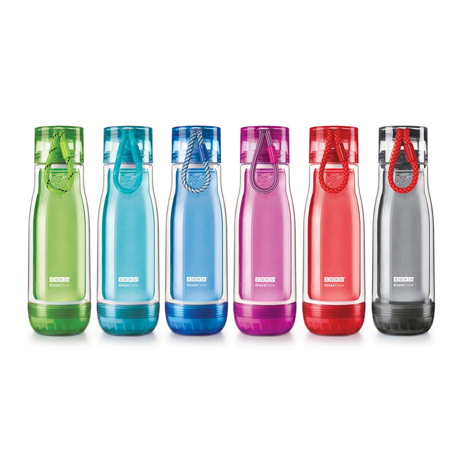 Компактная бутылка Zoku идеально подойдет для тех, кто регулярно занимается спортом и любит активный образ жизни. Бутылка выполнена из боросиликатного стекла и заключена в пластиковый корпус, укрепленный с двух сторон силиконовыми ударопрочными подкладками. Крышка полностью герметична, оснащена прочным и гибким шнурком для переноски и закрывается при повороте всего на 90° благодаря запатентованной технологии Rapid Lock™. Защитная конструкция с двойными стенками помогает избежать конденсации и поддерживает температуру напитка в течение долгого времени. Бутылка совмещает в себе все преимущества стекла и пластика - она не накапливает запахи, ее легко мыть и удобно брать с собой.