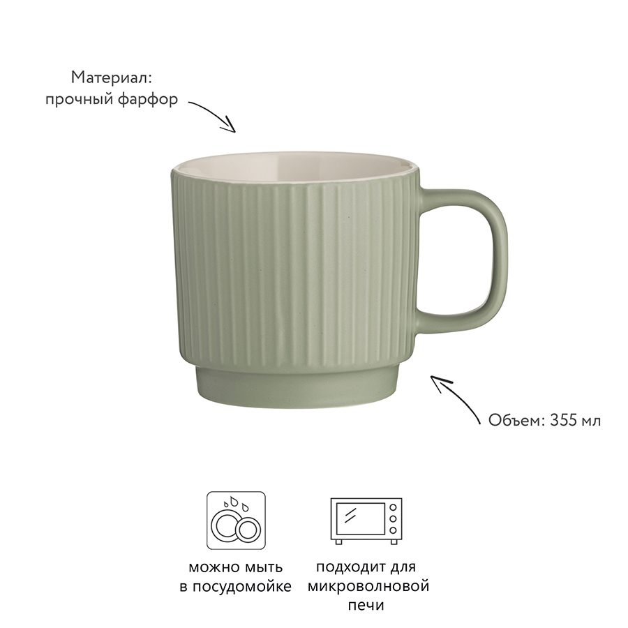 Чашка Embossed объемом 355 мл подарит незабываемые минуты наслаждения горячими напитками. В ней любимый чай с лимоном, кофе, шоколад или капучино покажется вкуснее и ароматнее. Для украшения посуды дизайнеры используют утонченное тиснение и современную матовую отделку. Чашку из прочного фарфора можно мыть в посудомоечной машине и использовать в микроволновой печи.