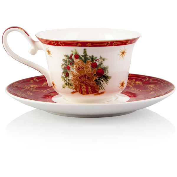 Чашка чайная с блюдцем 16см Новогодние праздники Lamart