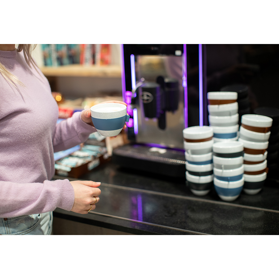 Изделие долго держит температуру горячих напитков, при этом не нагреваясь. Резиновый ободок не дает чашке скользить в руках. Изделие не бьется и не деформируется. Материал не содержит бисфенола-А и меламина.