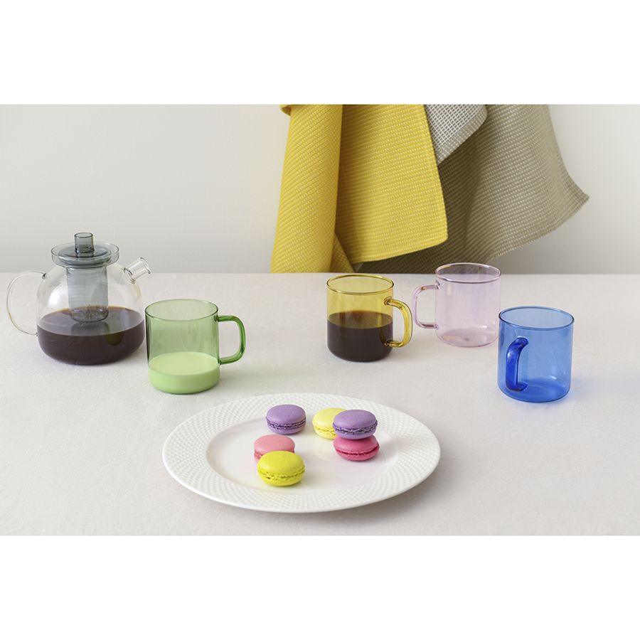 Чашка предназначена для холодных и горячих напитков. Цветная емкость из полупрозрачного стекла смотрится стильно и оригинально. Материал изготовления устойчив к износу, легко очищается от загрязнений. Посуду можно использовать как в помещении, так и на улице во время пикника или отдыха у бассейна.