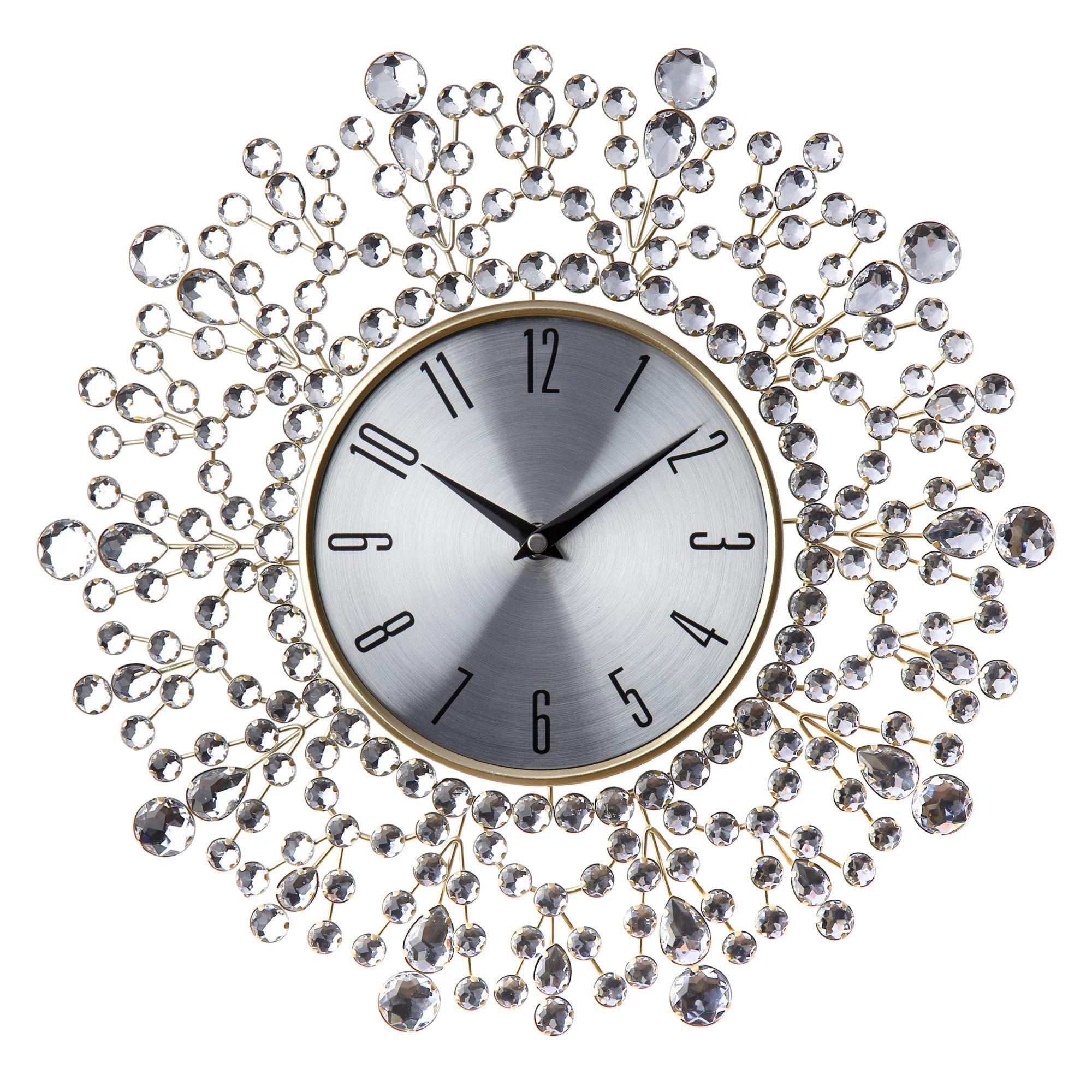 Кварцевые настенные часы в современном стиле. Выполнены из металла и акрила. Циферблат закрыт сферическим стеклом. Механизм с плавным ходом. 1 батарейка АА (не прилагается).