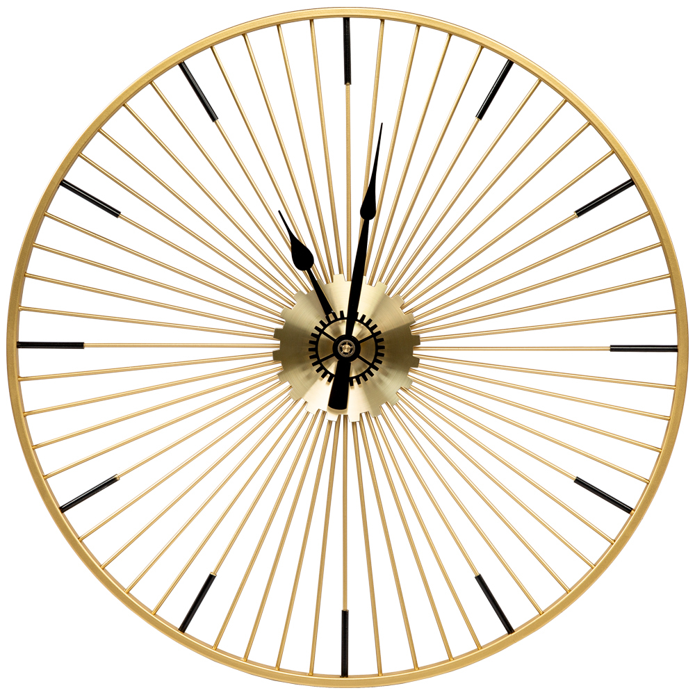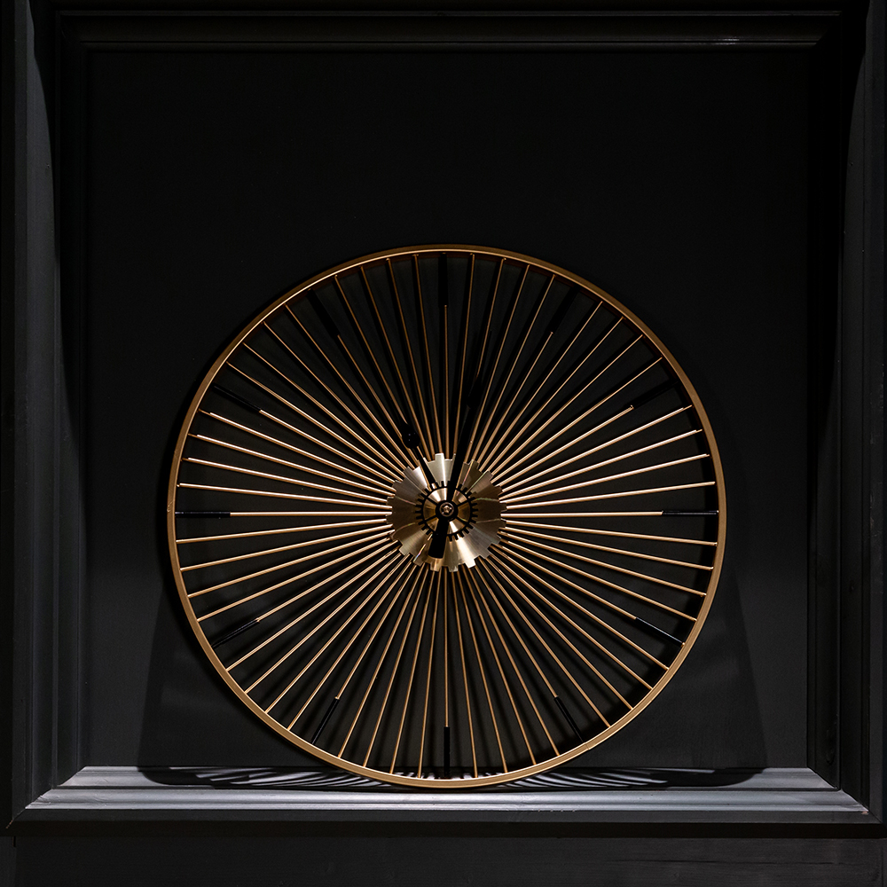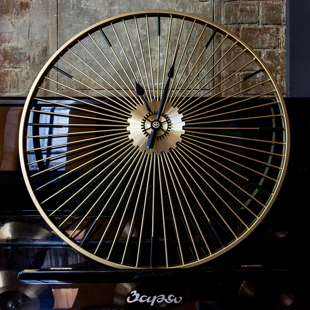 Никаких цифр, никаких тяжеловесных украшений, - только время, стрелки, указывающие время в пути, и Вы! Искусная огранка всегда была предметом гордости знаменитых часовщиков, однако современные создатели часов с легкостью игнорируют этот непреложный закон. Часы Даниэль напоминают золотое колесо с множеством спиц. Диаметр часов 60 см.