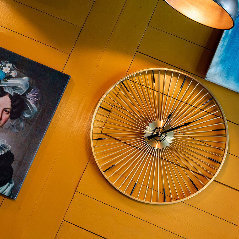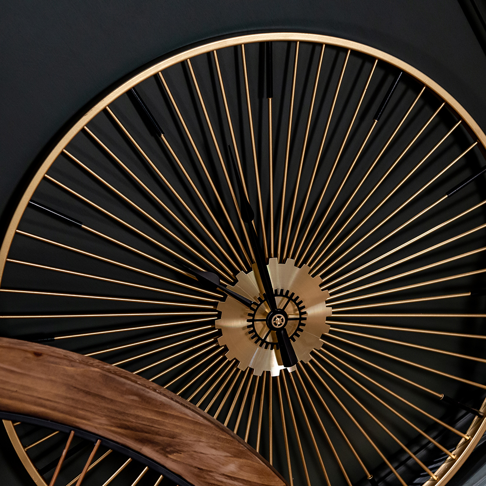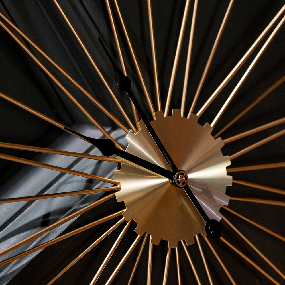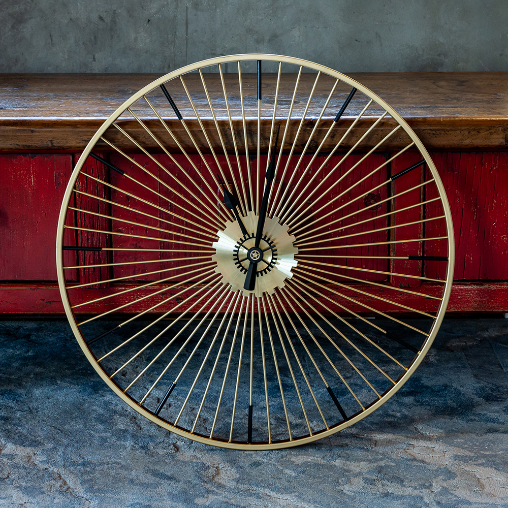 Никаких цифр, никаких тяжеловесных украшений, - только время, стрелки, указывающие время в пути, и Вы! Искусная огранка всегда была предметом гордости знаменитых часовщиков, однако современные создатели часов с легкостью игнорируют этот непреложный закон. Часы Даниэль напоминают золотое колесо с множеством спиц. Диаметр часов 60 см.
