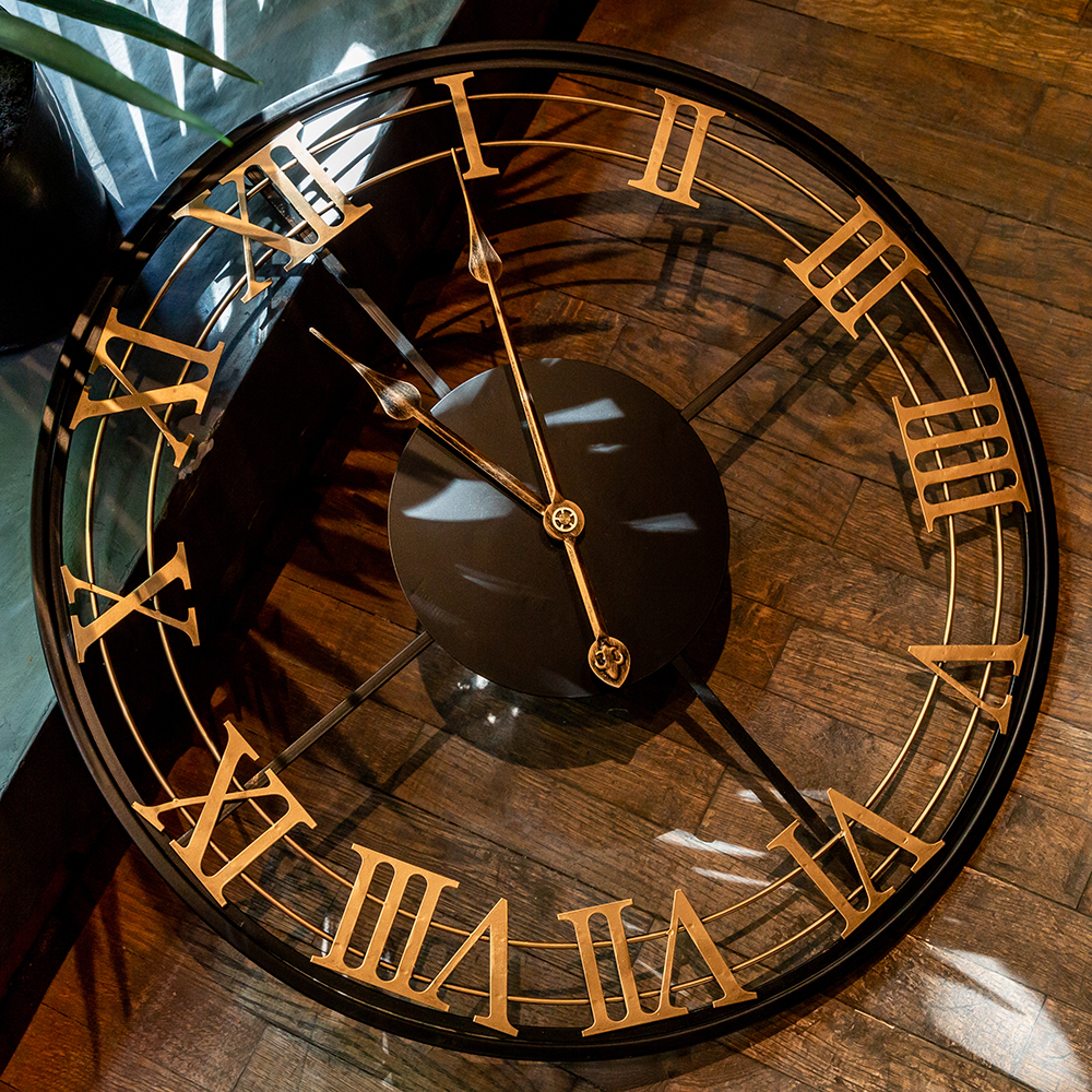 Цвета: корпус - черный, стрелки и цифры - золотые