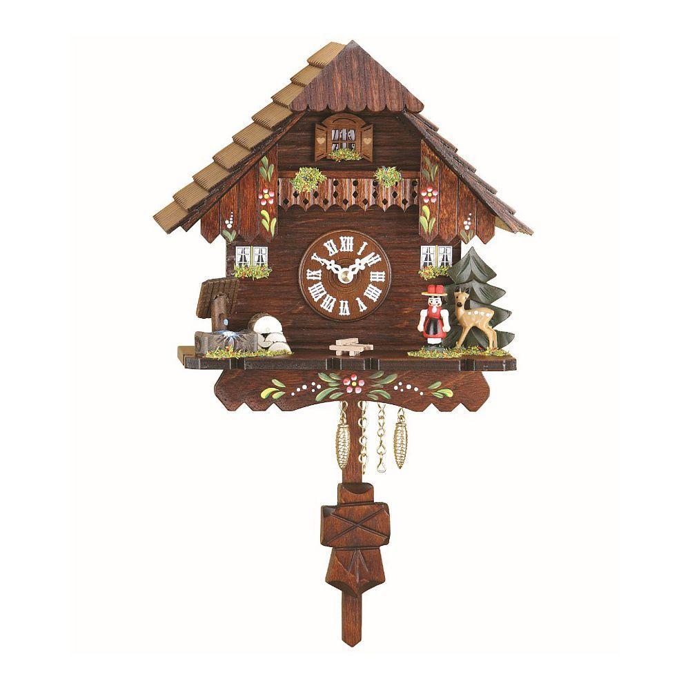 Кварцевые настенные часы с кукушкой и мелодией. Деревянный корпус украшен ручной росписью. Автоматическое отключение боя на ночь. Сделано в Германии.
