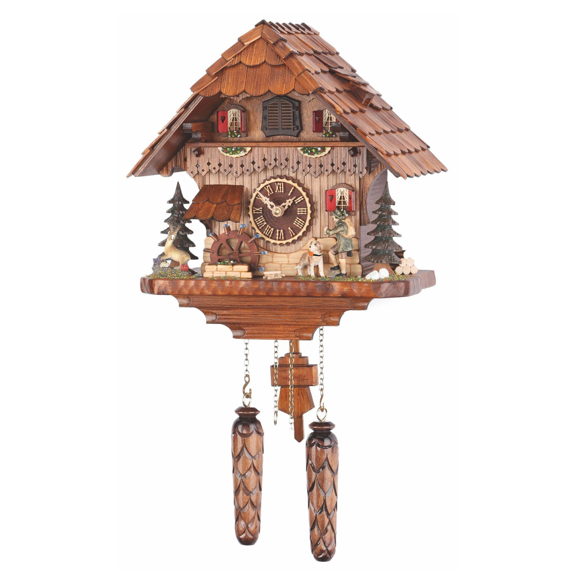 Кварцевые настенные часы с кукушкой + 12 мелодий. Автоматическое отключение боя на ночь. Деревянный корпус часов расписан вручную. Мельничное колесо вращается.