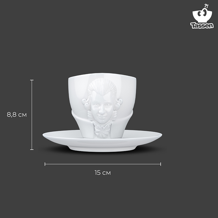 Чайная пара бренда Tassen из коллекции Talent станет центральной частью сервировки и превосходным подарком. Чашка украшена объемным изображением композитора Вольфганга Амадея Моцарта.