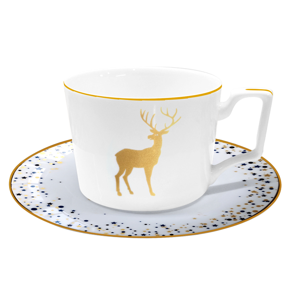 Эргономичная чашка удобно лежит в руке, согревая пальцы в холодные дни, а блюдце защищает поверхность стола и служит местом для печенья или ложки. Чайная пара идеально подходит как для утреннего кофе, так и для вечернего чая, добавляя зимнего настроения в обычный день.