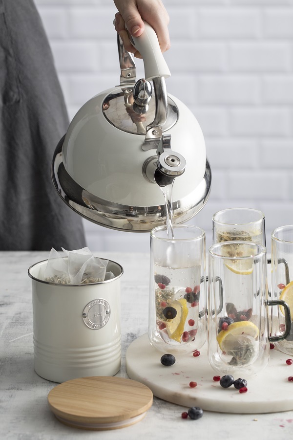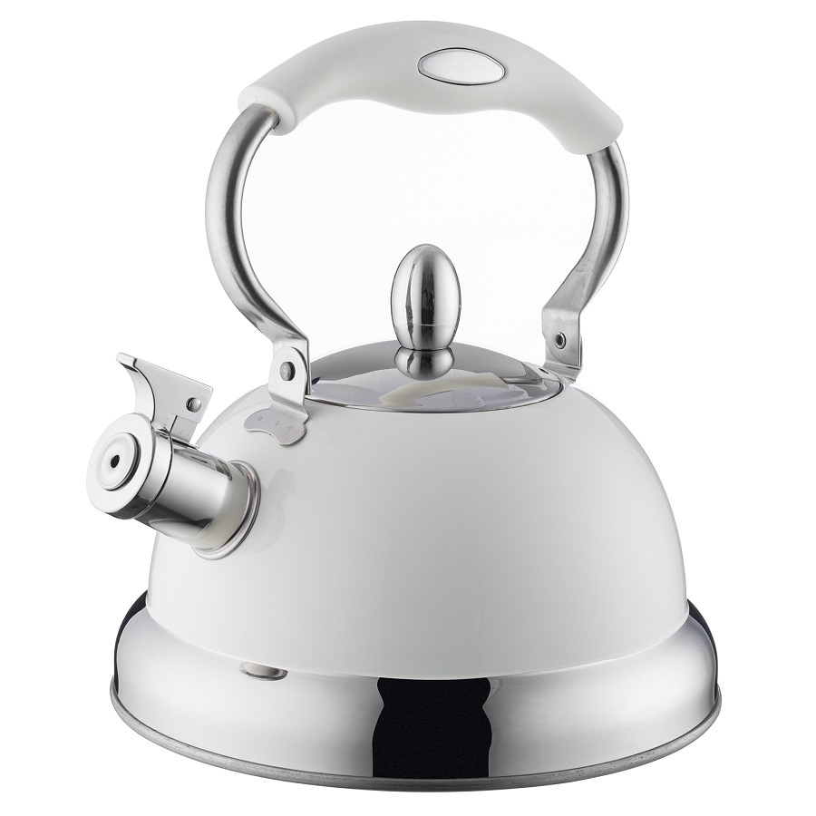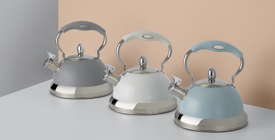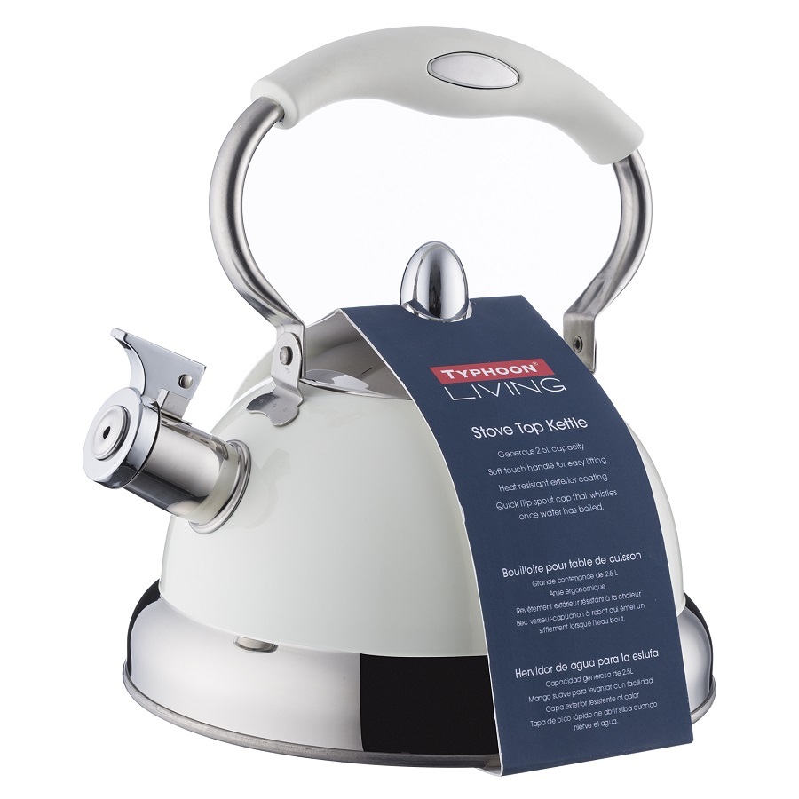 Чайник со свистком Living – практичная и удобная посуда для приготовления чая, кофе и других горячих напитков. Модель выполнена в мягких пастельных тонах, что позволяет ей стать гармоничным дополнением классического или современного интерьера кухни. При создании изделия мастера используют качественную нержавеющую сталь, которая не поддается воздействию коррозии и высокой температуры. На наружную поверхность корпуса нанесено термостойкое покрытие, которое придает изделию привлекательный внешний вид. Посуда дополнена мягкой ручкой для удобного захвата ладонью и свистком, который сигнализирует о закипании воды. Чайник Living бренда Typhoon подходит для любой варочной поверхности, в том числе для индукции.Объем: 2,5 л