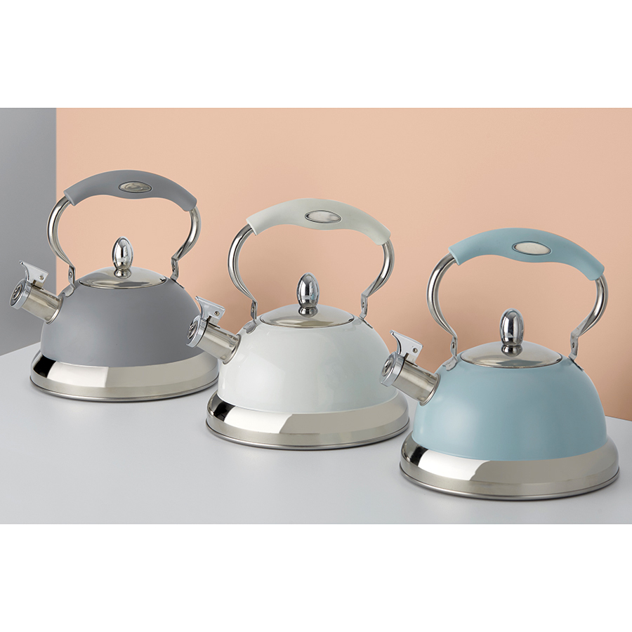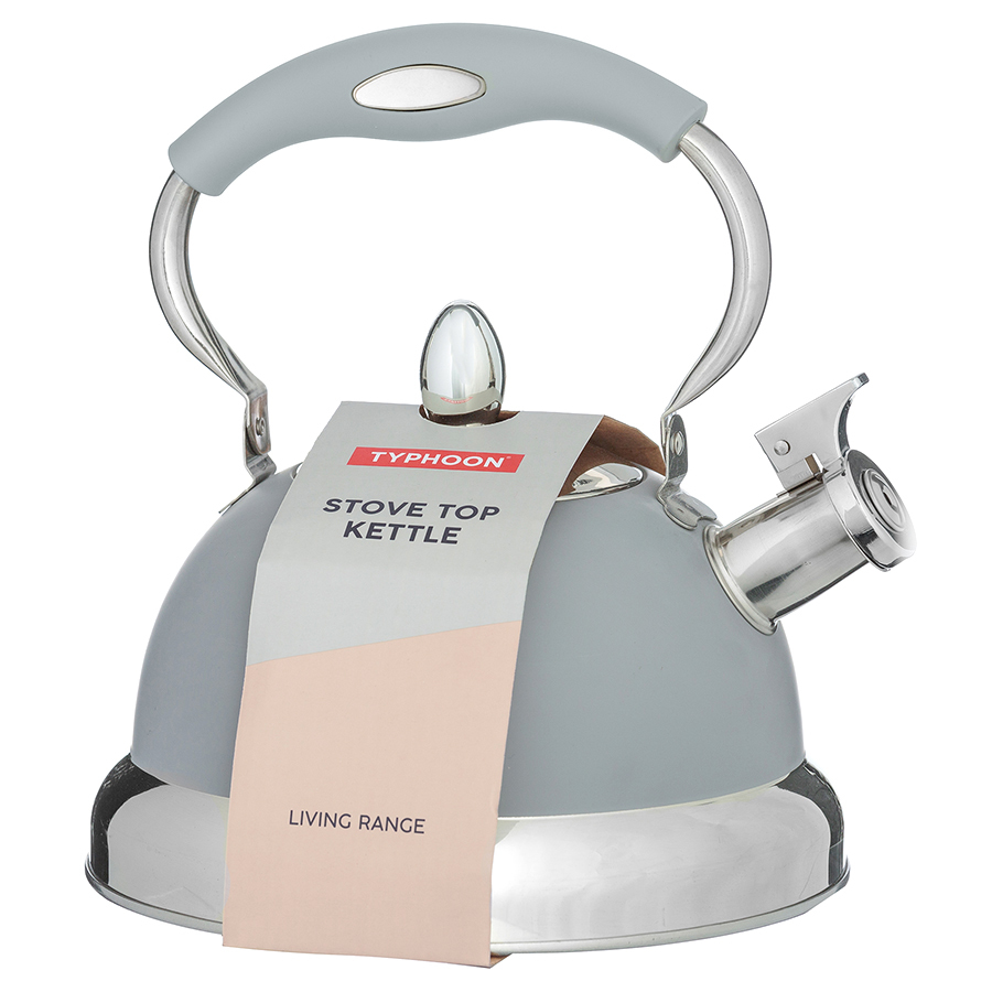 Чайник со свистком Living – практичная и удобная посуда для приготовления чая, кофе и других горячих напитков. Модель выполнена в мягких пастельных тонах, что позволяет ей стать гармоничным дополнением классического или современного интерьера кухни. При создании посуды используется качественная нержавеющую сталь, которая не поддается воздействию коррозии и высокой температуры. На наружную поверхность корпуса нанесено термостойкое покрытие, которое придает изделию привлекательный внешний вид. Посуда дополнена мягкой ручкой для удобного захвата ладонью и свистком, который сигнализирует о закипании воды. Чайник Living бренда Typhoon подходит для всех видов плит.Объем: 2,5 л