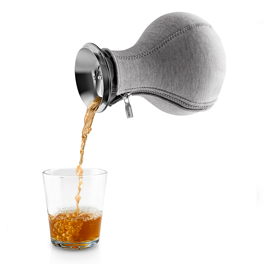 Заварочный чайник в стильном дизайне прекрасно подойдет для любителей горячего ароматного чая. Колба чайника имеет объем 1 л, округлую форму и большое выпуклое дно, которое делает чайник устойчивым, не позволяя ему перевернуться. Темно-серый неопреновый чехол на молнии сохраняет чай горячим как можно дольше.