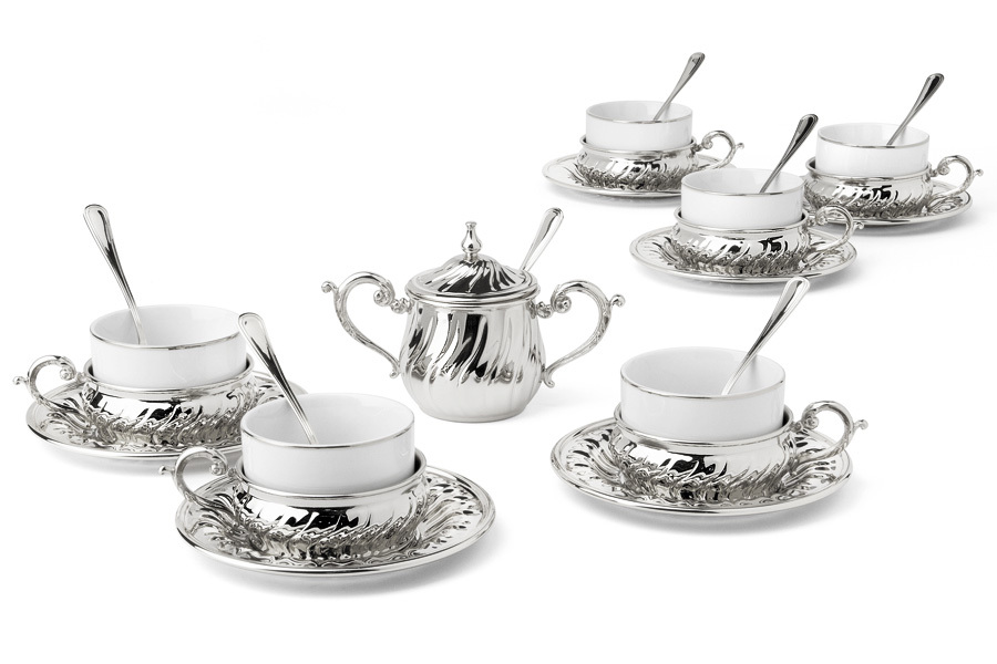 Чайный набор на 6 персон Stradivari с отделкой под серебро в подарочной коробке Гамма