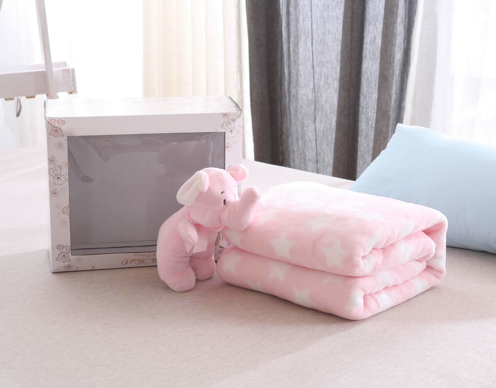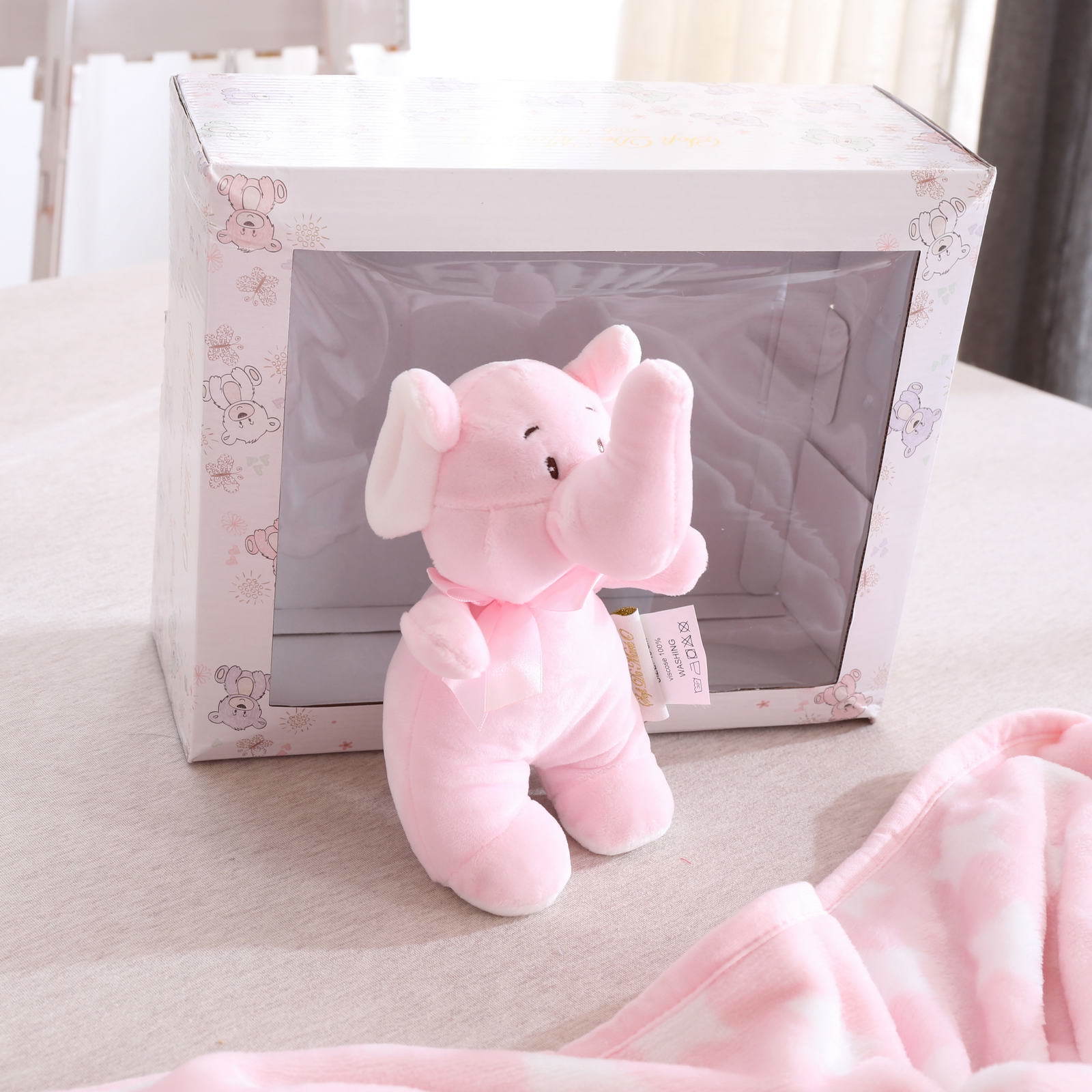 Плед детский с игрушкой.. Размер: 100х150; мишка h-18см Состав: 100% полиэстер; Упаковка: подарочная коробка с лентой.