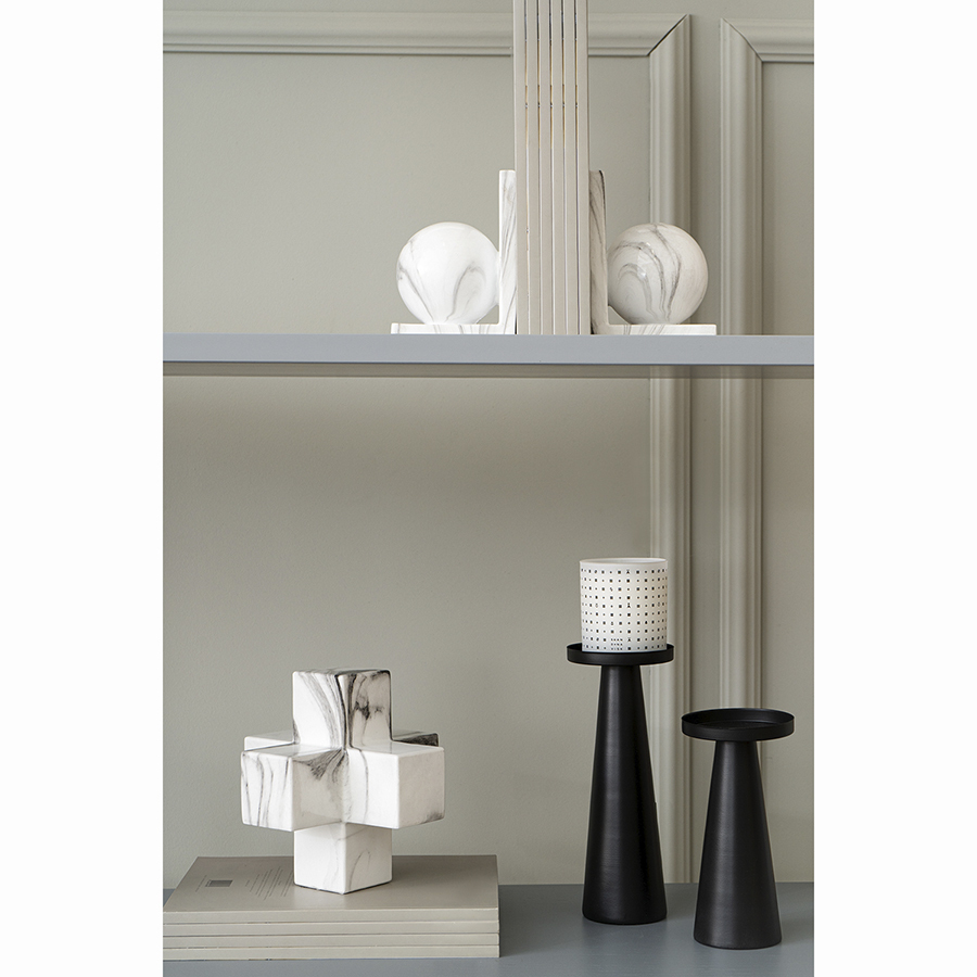 Аксессуар выполнен из искусственного мрамора – композитного материала, имитирующего узор и фактуру натурального камня. Изделие отличается прочностью, устойчиво к износу, не требует специального ухода. Простые геометрические формы и минималистичный дизайн позволяют вписать украшение практически в любую обстановку.