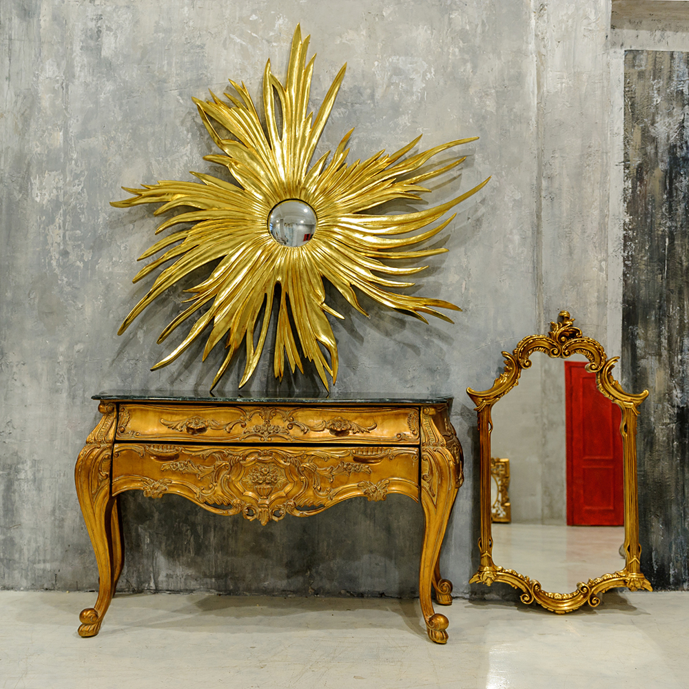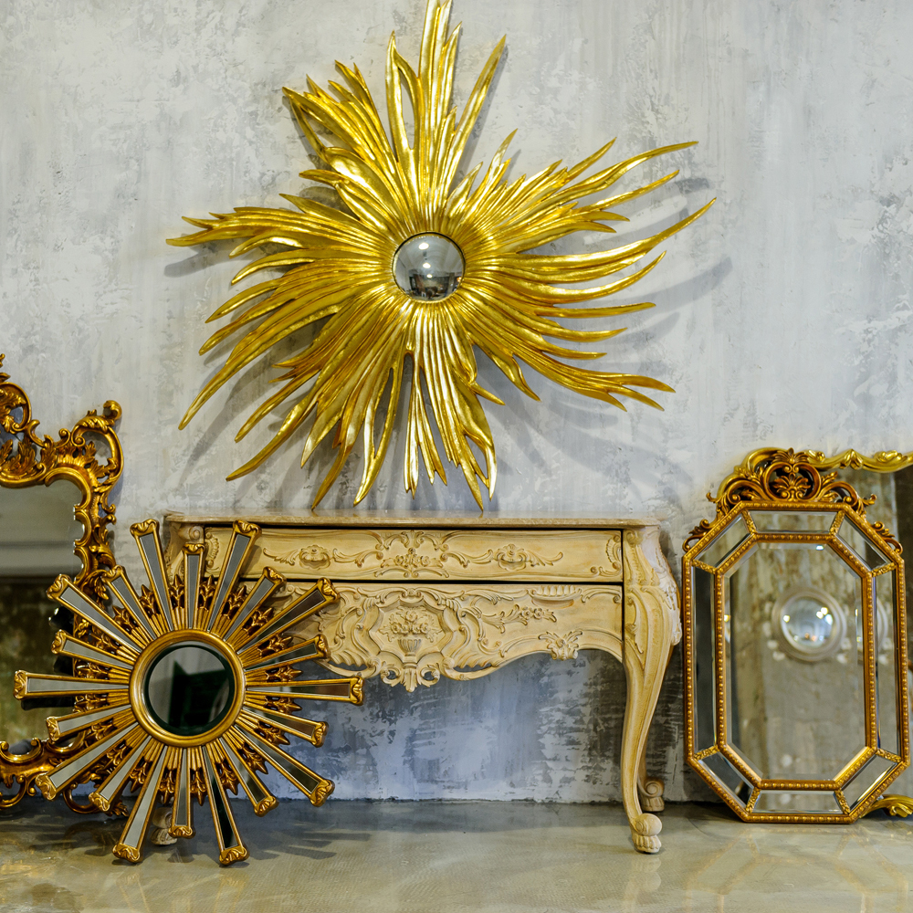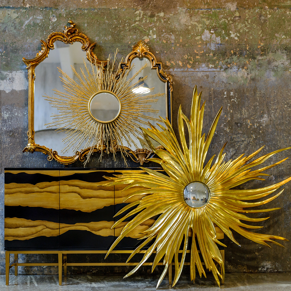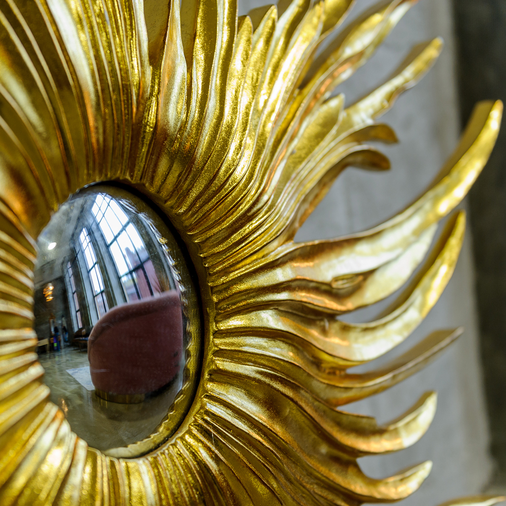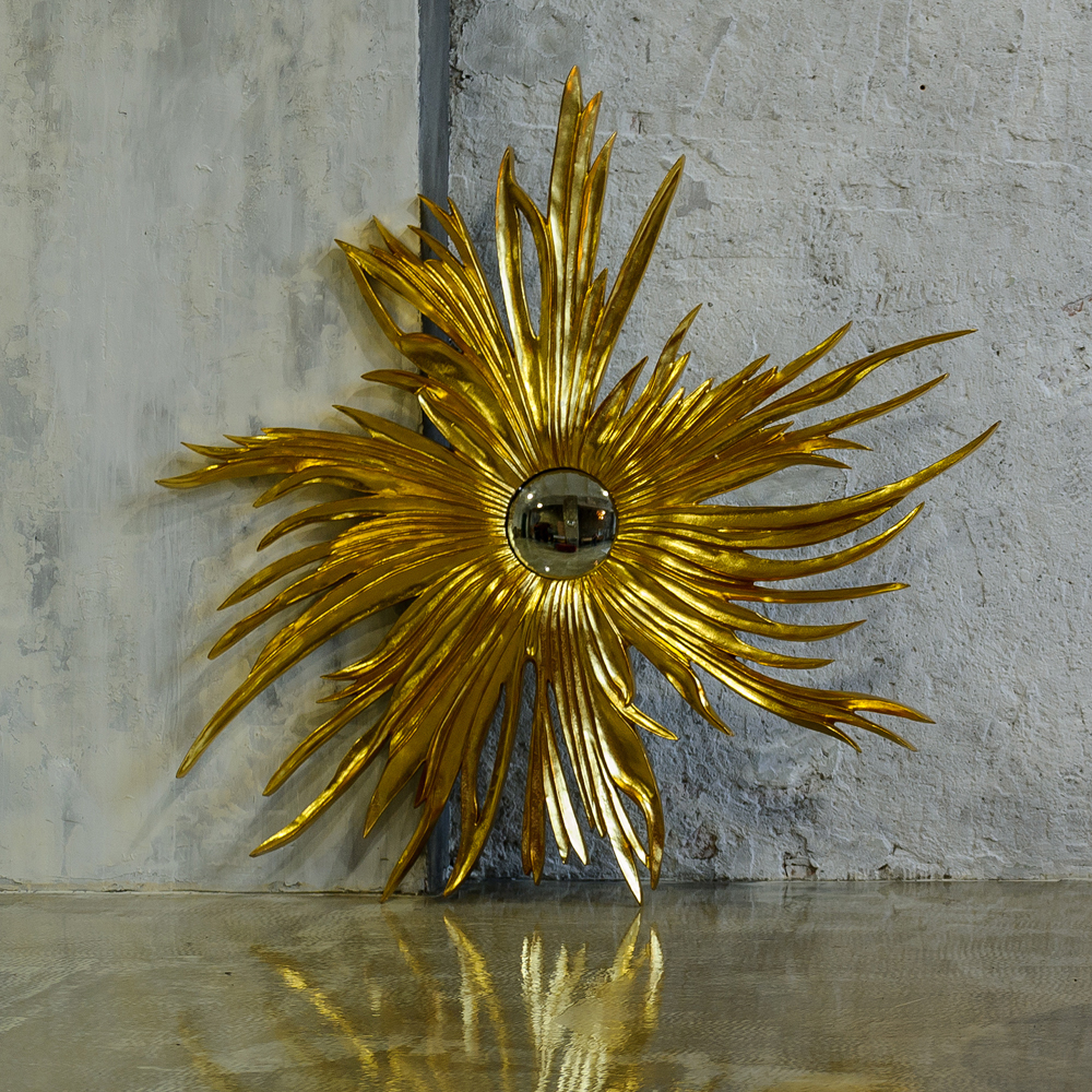 Зеркало Электра имеет объемную выпуклую форму fish-eye. Широкие лучи раздвигают простор помещений, наполняя их отраженным блеском и событийным настроением. За эффект абсолютного интерьерного господства отвечает гигантский размер этой зеркальной звезды: 1,6 метра в диаметре!