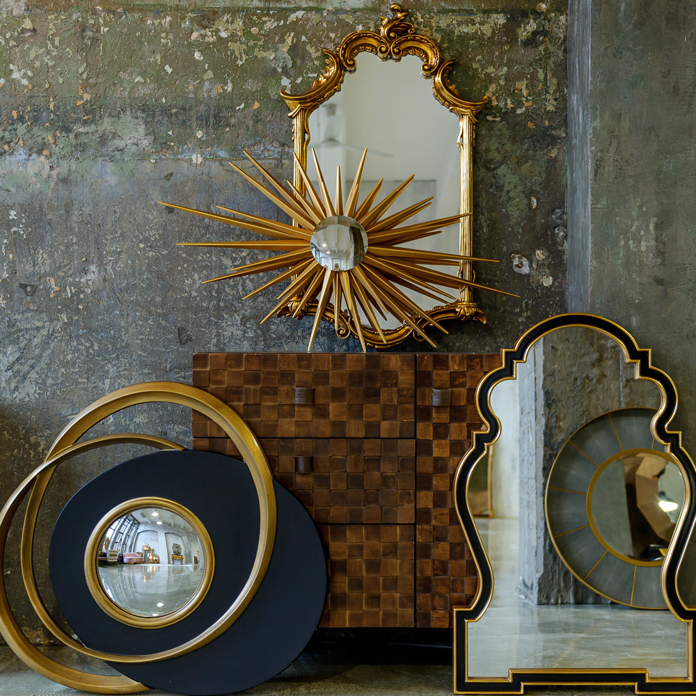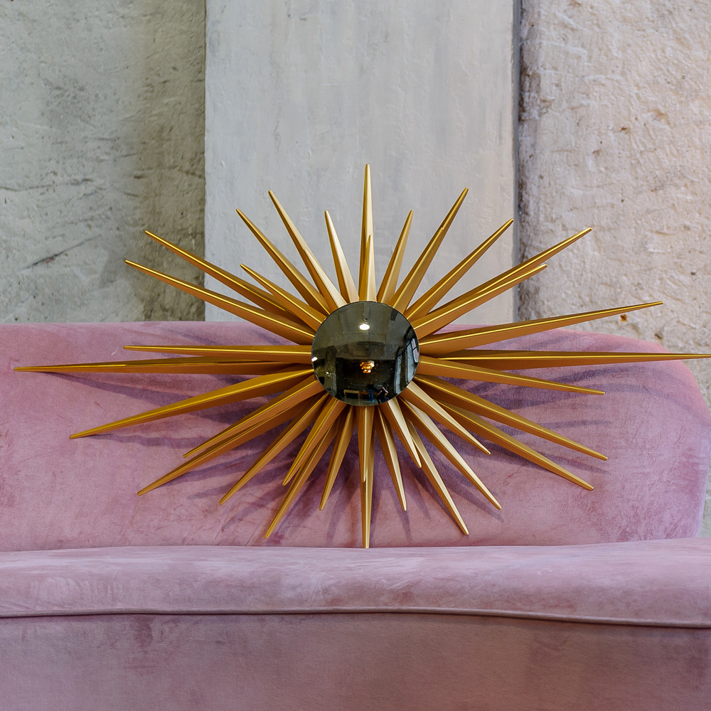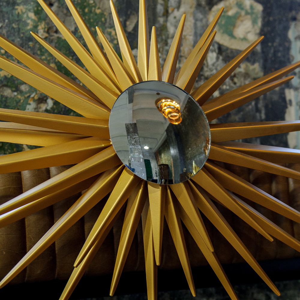 Прямая функция отражения для зеркал осталась в прошлом веке. В наши дни зеркала вновь обрели миссию, предназначенную им в эпоху Версаля, когда они почитались главным интерьерным украшением, отражали статус и достаток владельца. К разряду интерьерных относится и дизайнерское зеркало Глория. Просторные лучи его оправы раздвигают простор комнаты, их конусный рельеф придает украшению архитектурный объем, трехъярусные лучи оттеняют друг друга, создавая объемный 3D-эффект. Зеркальное полотно имеет выпуклую объемную форму fish-eye, погружающую отражения в головокружительный оптический иллюзион. Размер зеркального полотна: Ø 18,8 см
