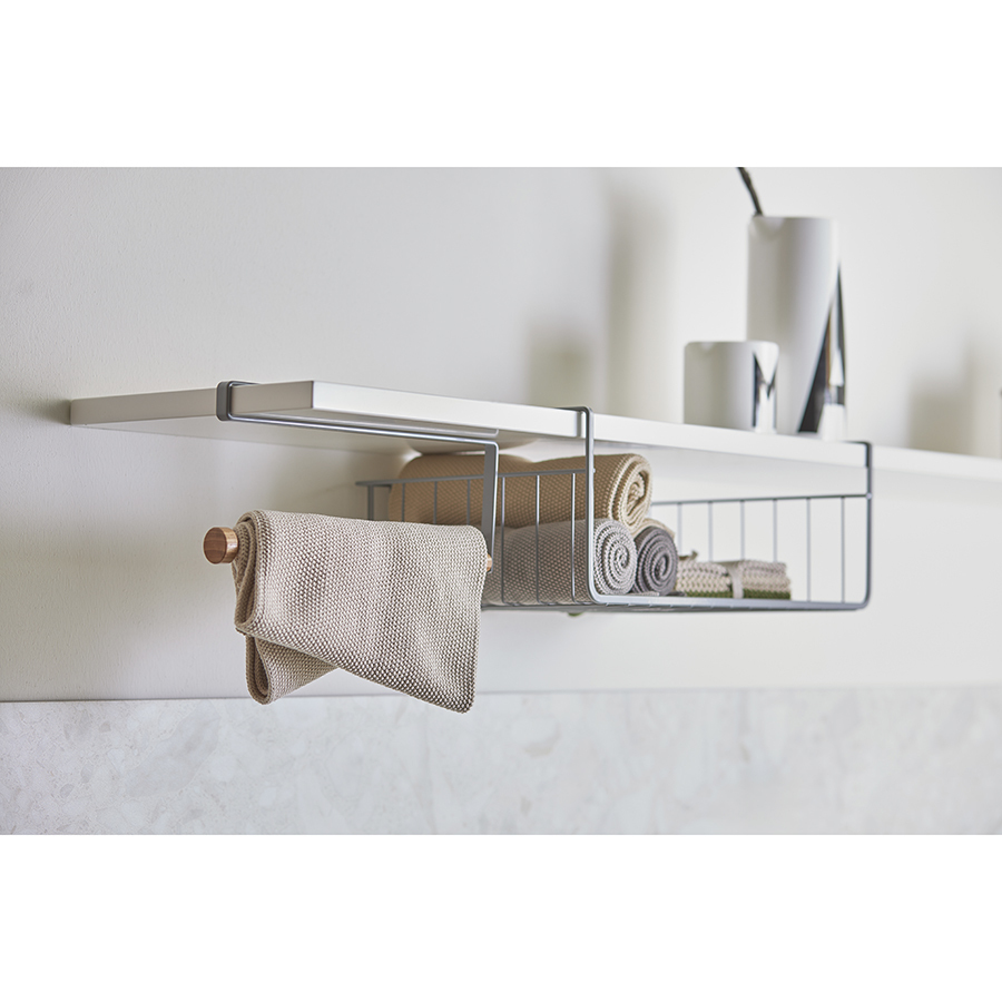 Материал: железо, бамбук. Размеры: 26,5х2,5х12,5 см. Максимальная нагрузка: 1 кг. Максимальная толщина поверхности для крепления держателя в пределах 2 см. Цвет: серый.