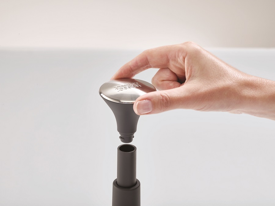 Держатель для бумажных полотенец Push&Tear – практичное и красивое решение от дизайнеров Joseph Joseph. Благодаря изящному дизайну девайс гармонично впишется в интерьер кухни или ванной комнаты. Наверху держатель оснащен пружинным механизмом, на который следует надавить, чтобы зафиксировать рулон для легкого разрыва. Широкое пластиковое основание защищено от опрокидывания и скольжения за счет резиновой накладки. Подходит только для рулонов бумажных полотенец стандартной высоты (,до 24 см),.