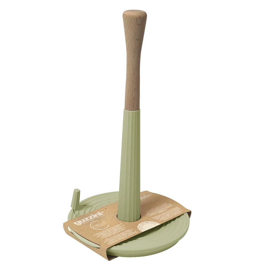 Держатель для бумажных полотенец Tierra выполнен из переработанного пластика с элементами из дерева. Материал имеет антибактериальные свойства, создавая на своей поверхности защитный барьер, препятствующий размножению бактерий. Держатель оснащен регулируемым фиксатором листа, который адаптируется под размер рулона и позволяет аккуратно оторвать кусок бумаги нужного размера. Дизайн изделия напоминает керамику, а реалистичность внешнему виду придают тщательно подобранные пастельные тона и неровные круговые узоры, создающие эффект ручной работы.