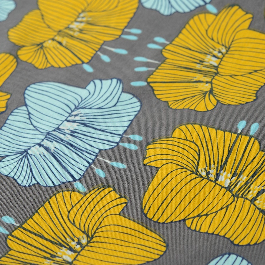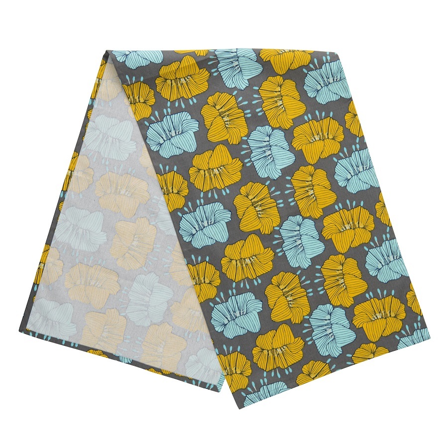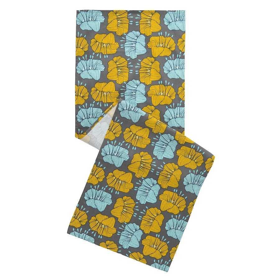 Дорожка на стол из хлопка серого цвета с принтом Цветы из коллекции Prairie гармонично дополнит повседневную и праздничную сервировку. Дизайн с крупными цветами станет , ,ярким акцентом и гармонично впишется в любой современный стиль. Изделие из экологически чистого и приятного на ощупь материала будет выглядеть новым даже после множества стирок. Тип плетения: твил.